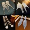 Pendientes largos con borlas de metal con incrustaciones de diamantes, populares en Europa y América, para mujer, pendientes de alta gama, temperamento de nicho, pendientes transfronterizos al por mayor