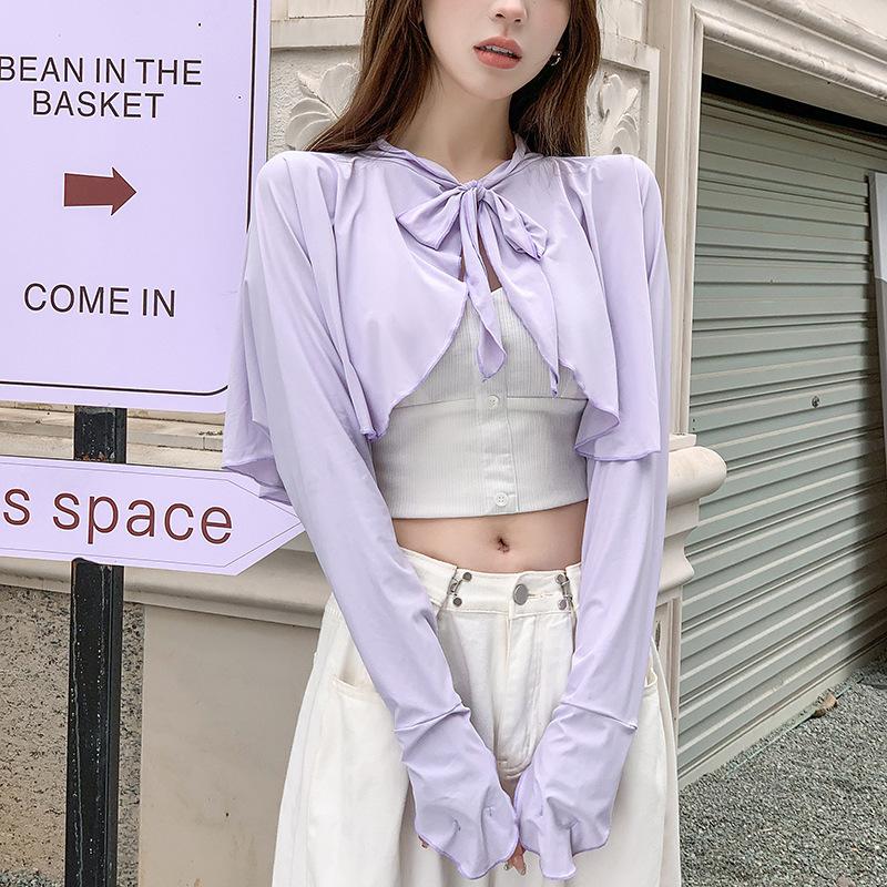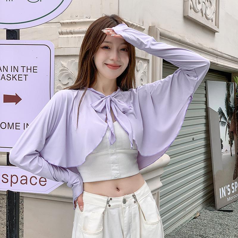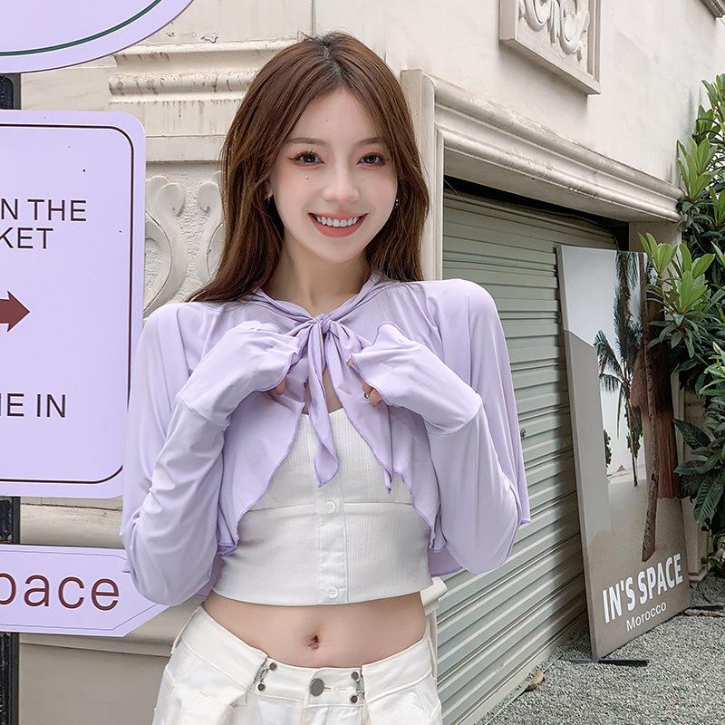 2023 nuevo lazo seda de hielo bloqueador solar para mujer verano para montar conducir manga larga chal manga de hielo color sólido