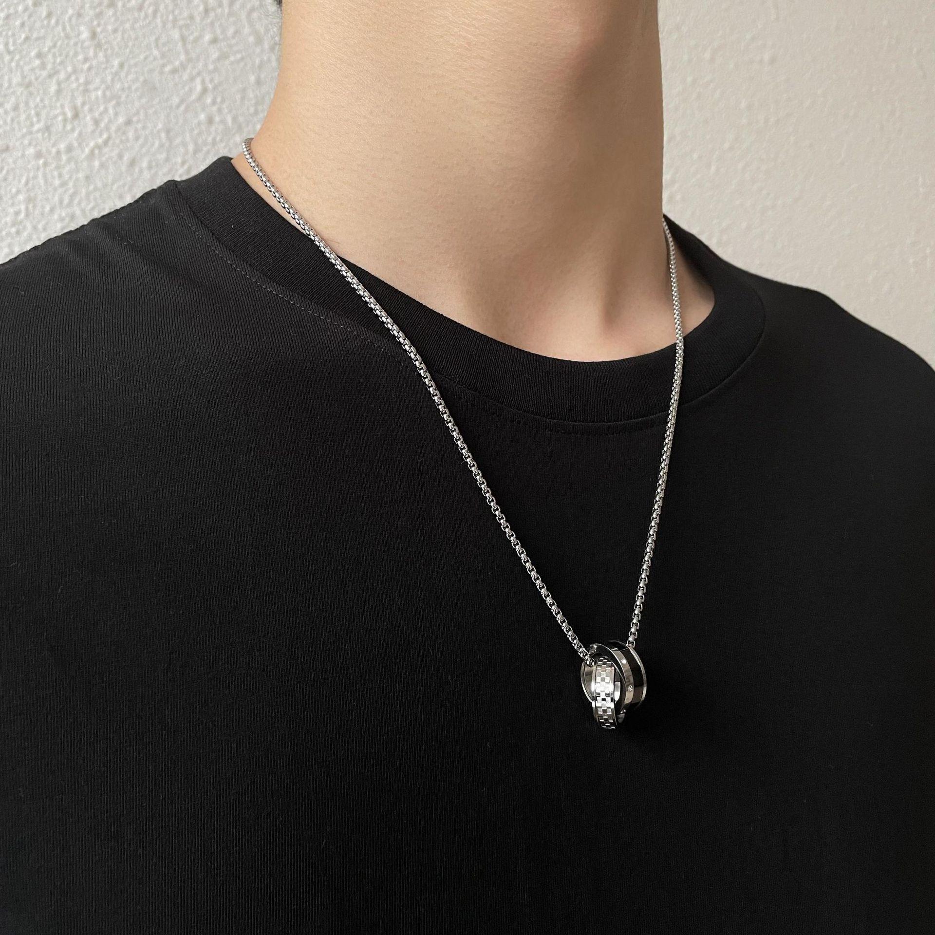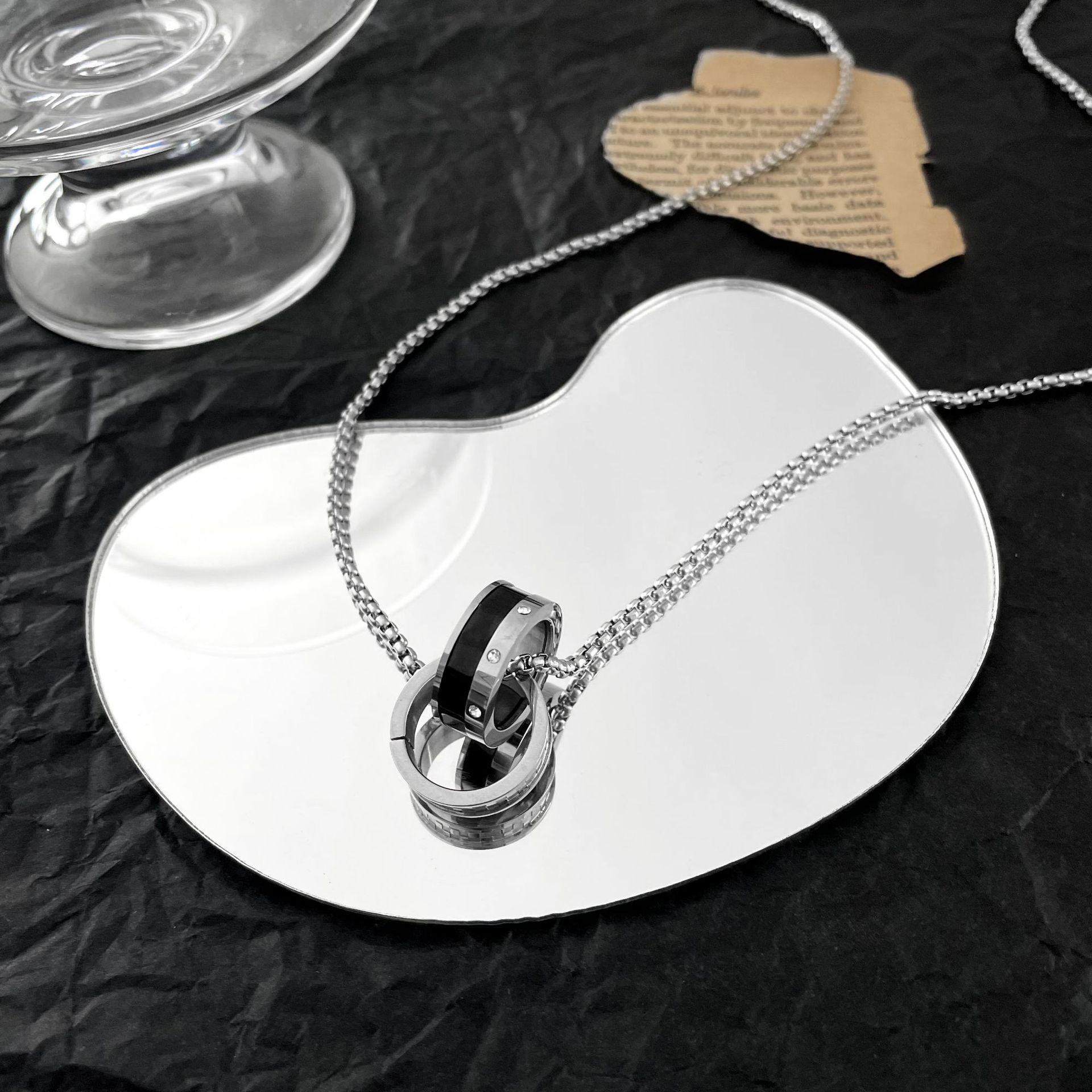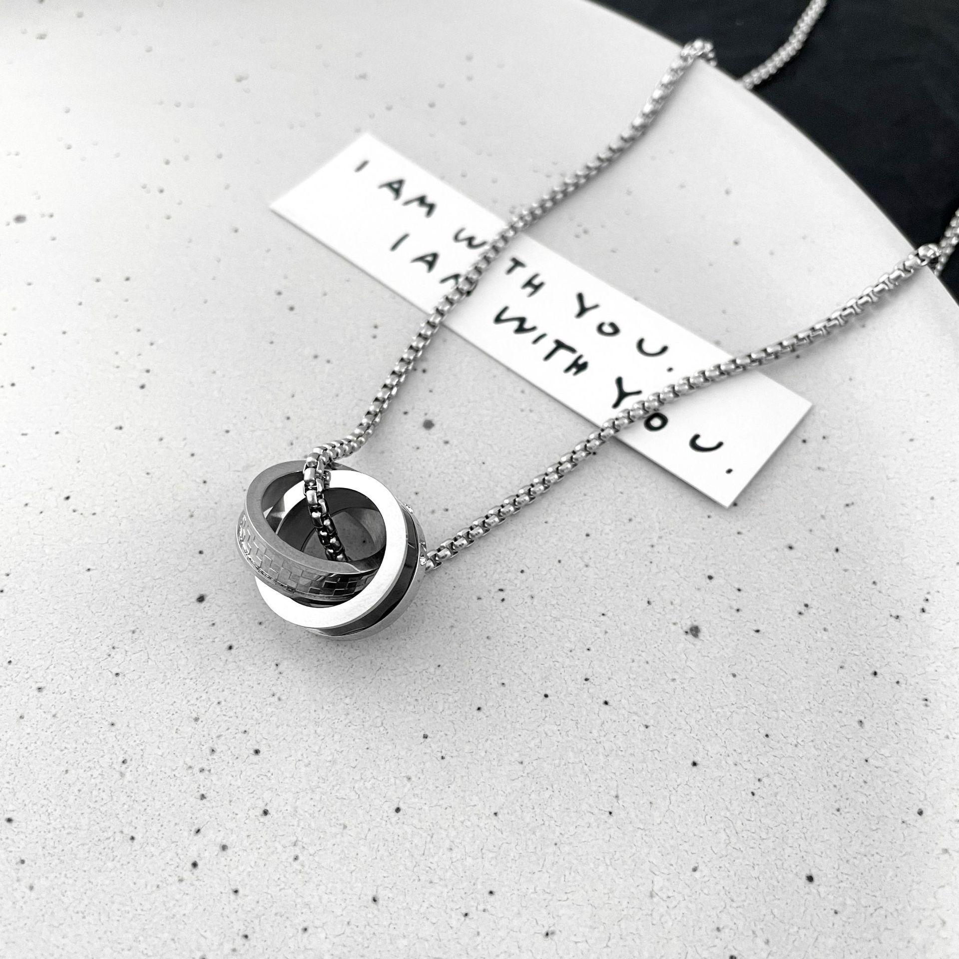 Colgante Sencillo Europeo y Americano de Acero de Titanio para Hombres y Mujeres Accesorios Personalizados Modernos de Calle Hip-Hop Versátil Collar con Hebilla de Doble Anillo