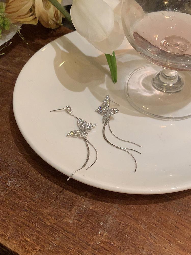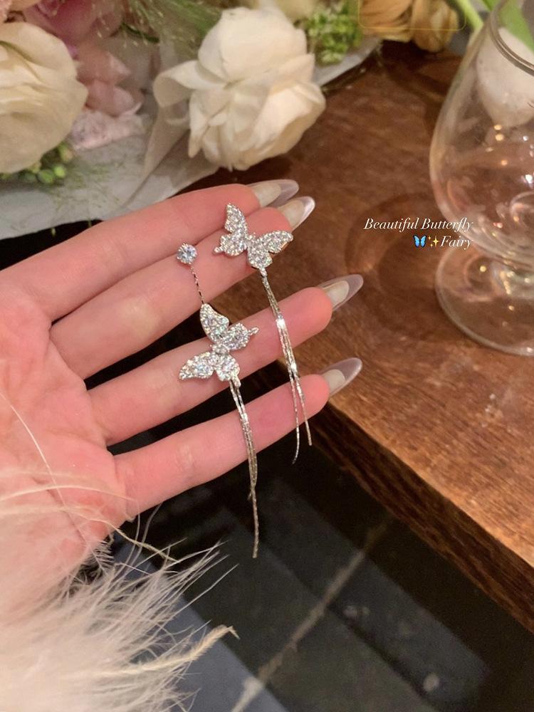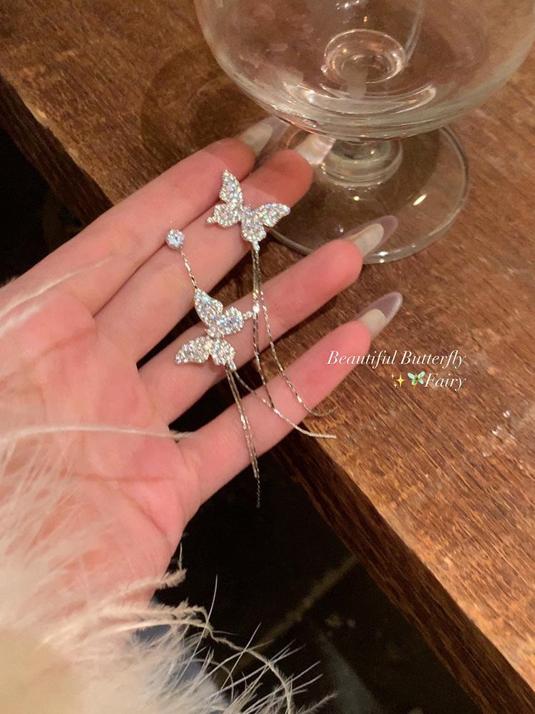 Pendientes de borla de mariposa con diamantes brillantes de última generación para mujer, ligeros, elegantes, de lujo, de celebridades de Internet, pendientes largos, nuevos accesorios para las orejas 2024