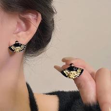 Nuevos aretes de flores en forma de abanico de estilo chino para mujer, aretes retro únicos de estilo chino, diseño de aguja de plata 925, aretes exquisitos