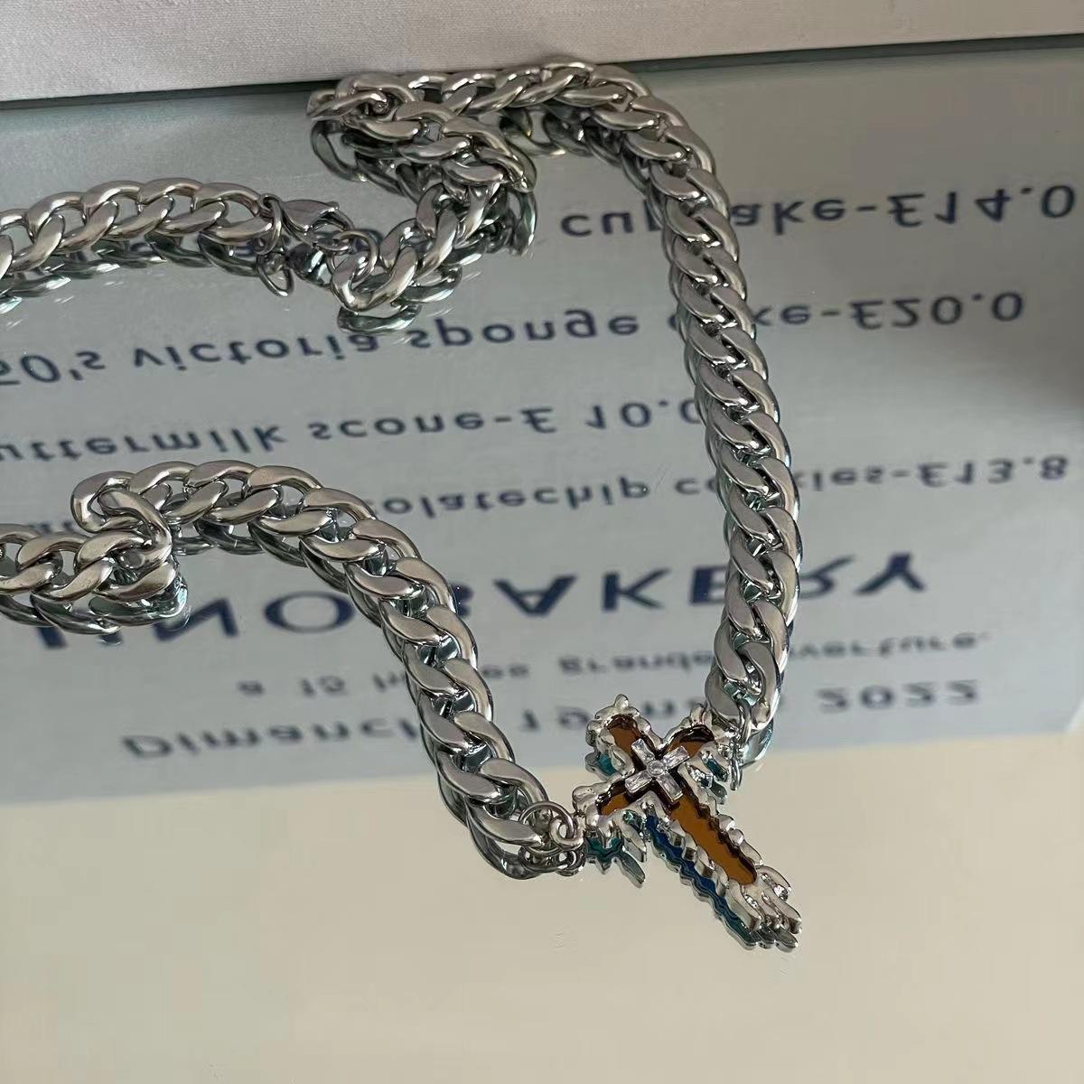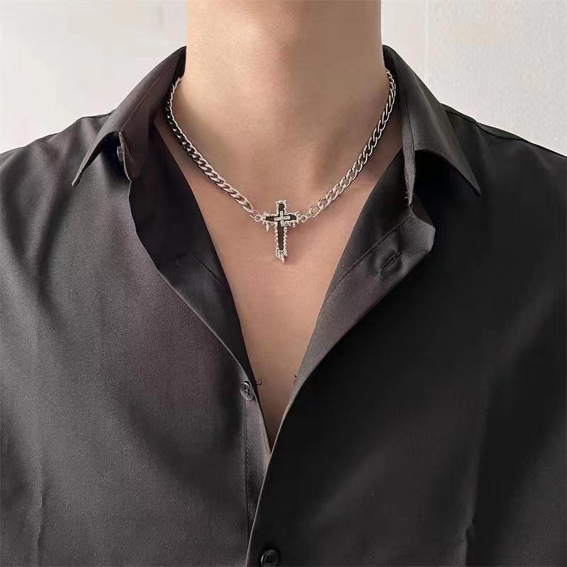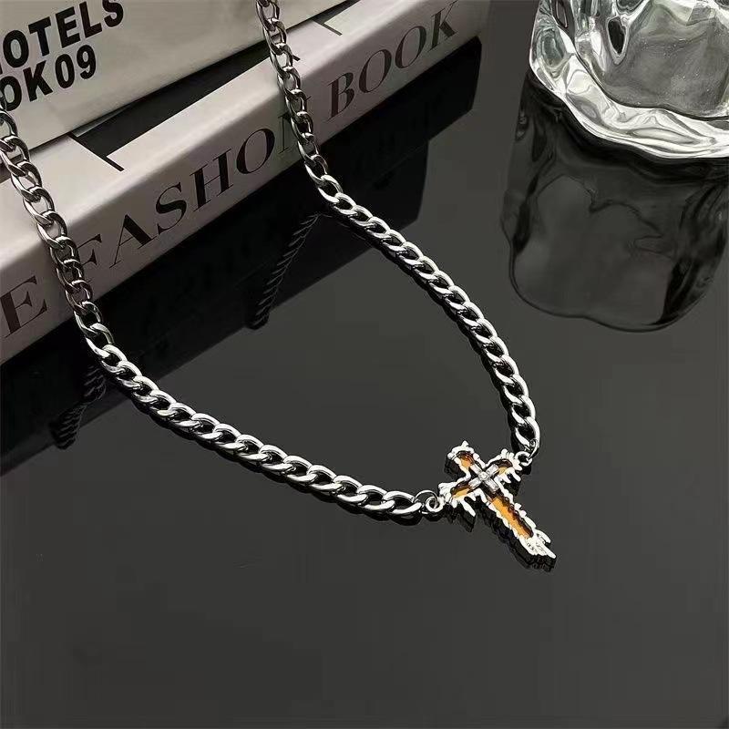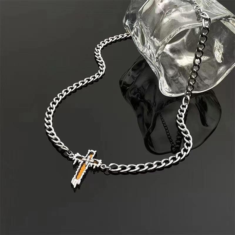 Collar de suéter de acero de titanio estilo Cross Cold para hombre, cadena de suéter de alta gama con diseño de nicho para mujer, cadena de clavícula de hip-hop