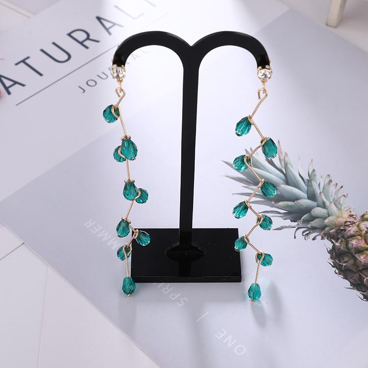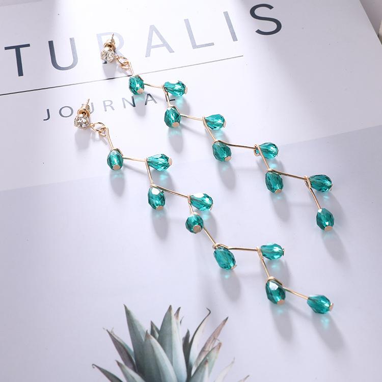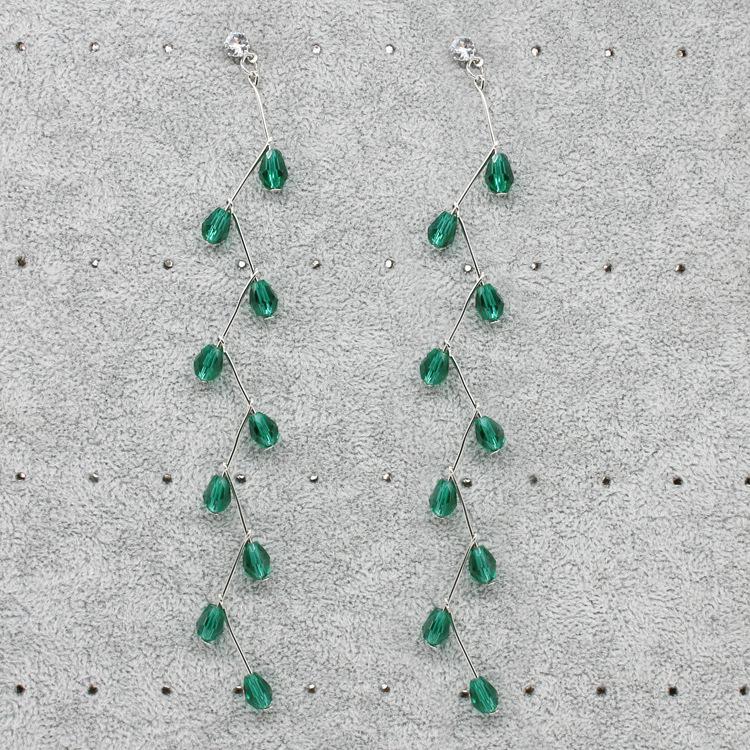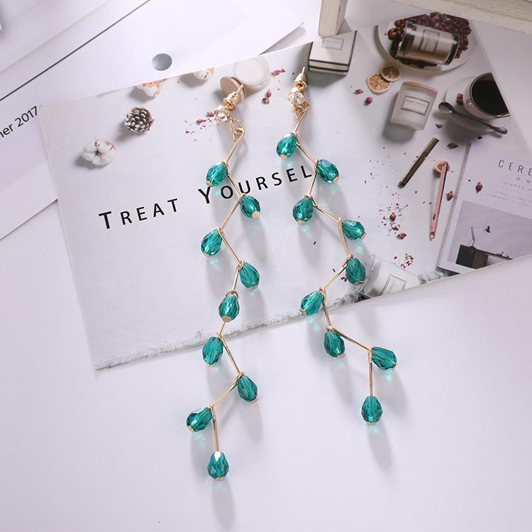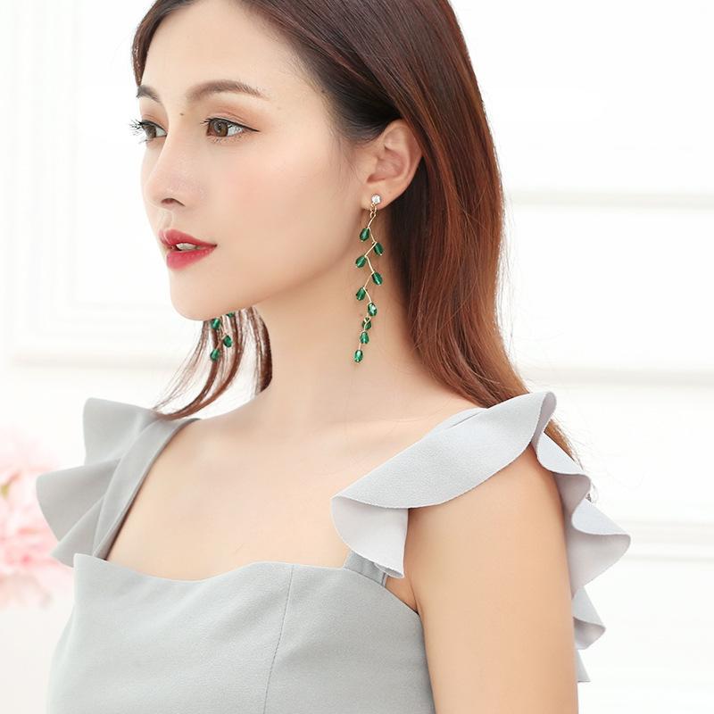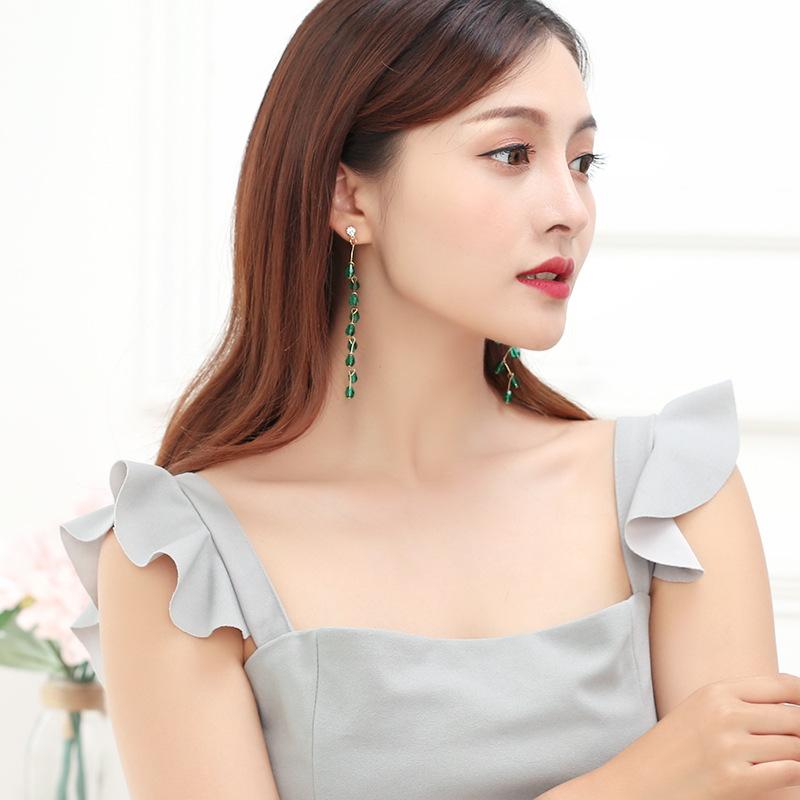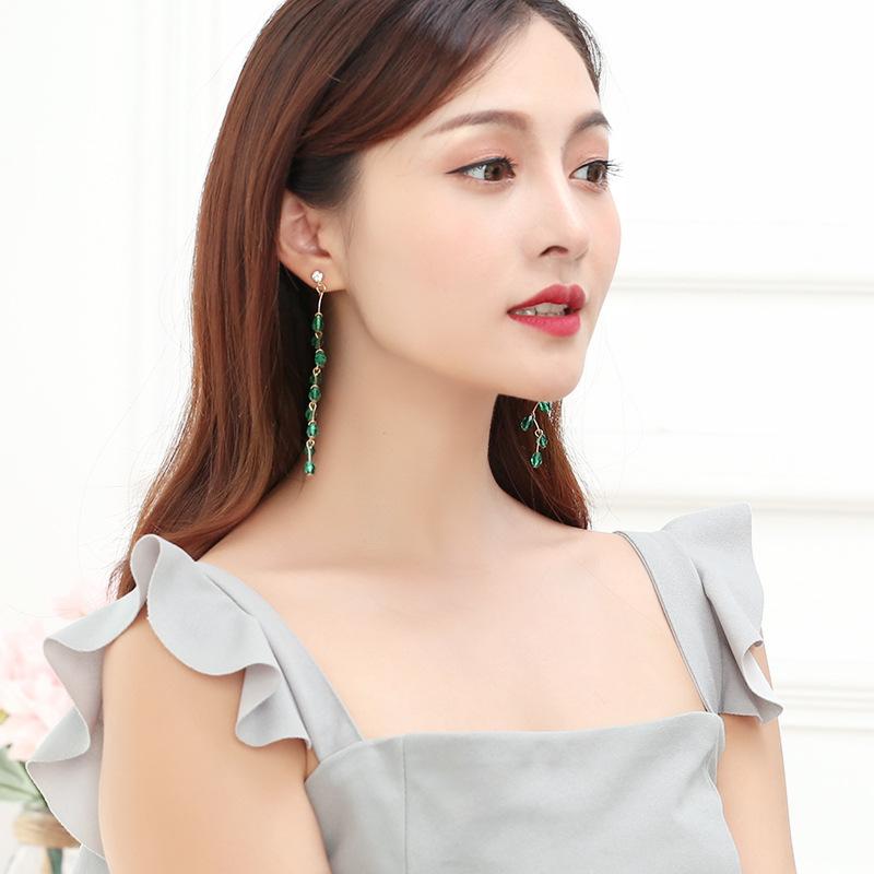 Aretes Largos de Borlas Retro Coreanos, Aretes Simples de Cristal Personalizados, Aretes Femeninos de Cristal Verde, Exquisitos