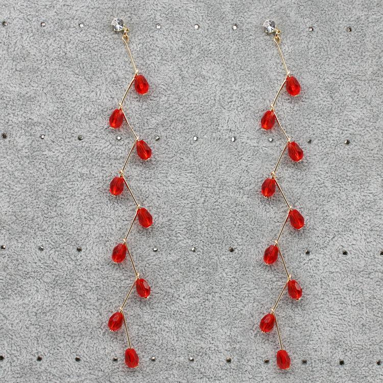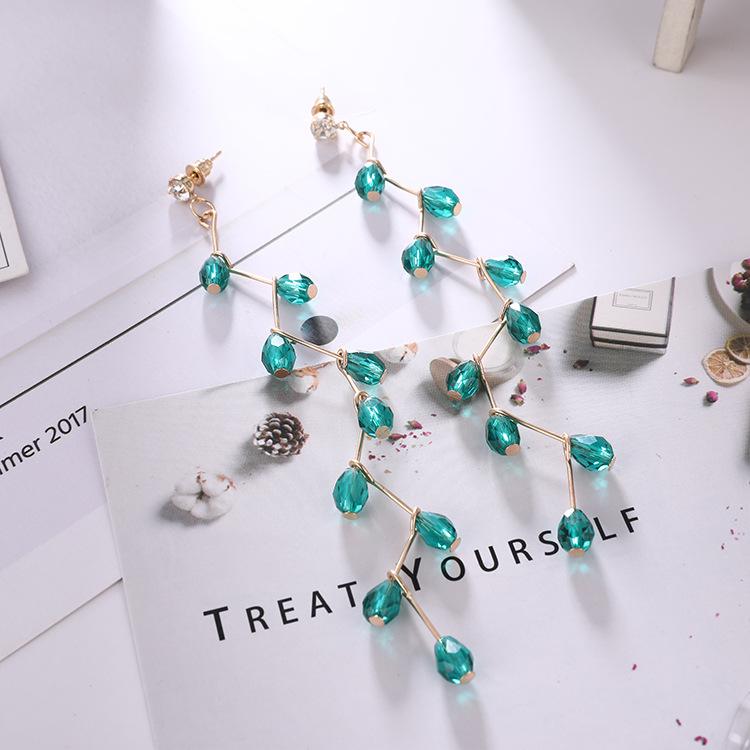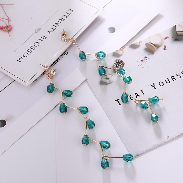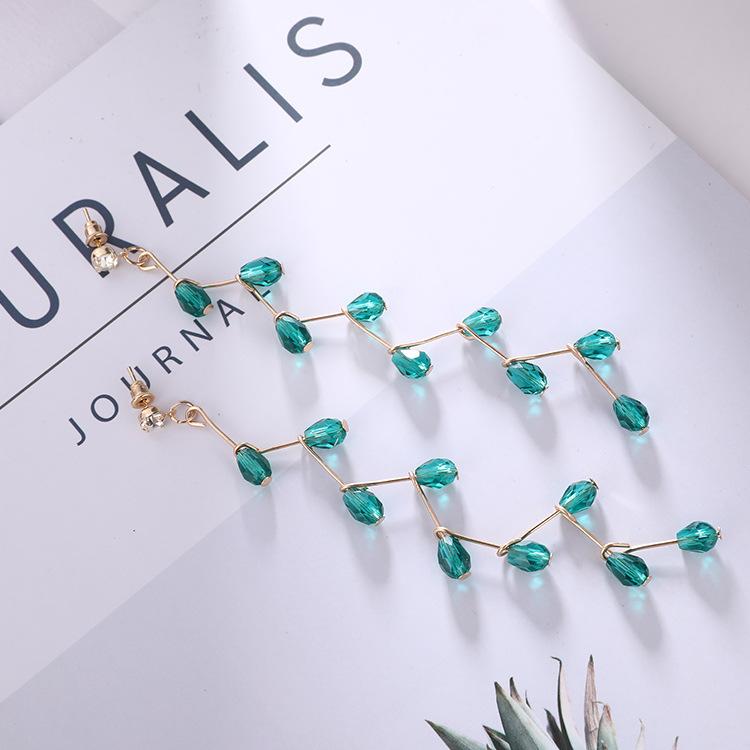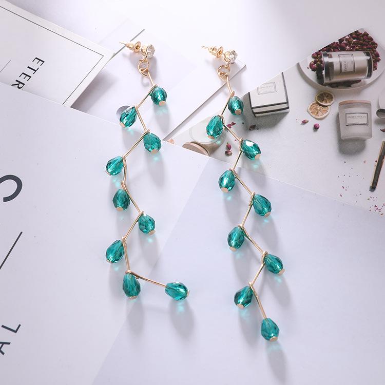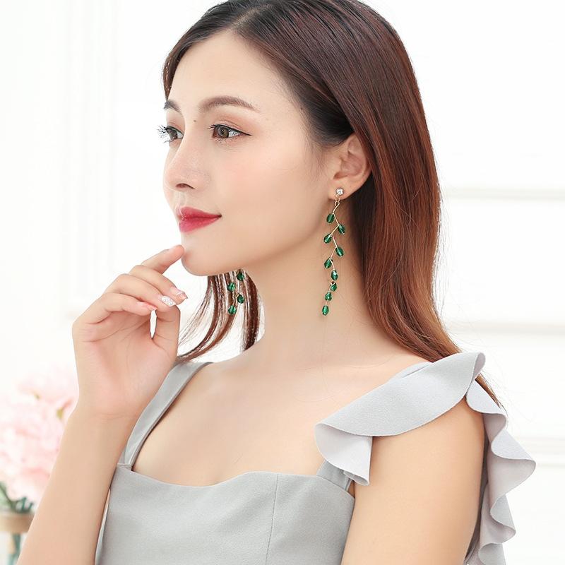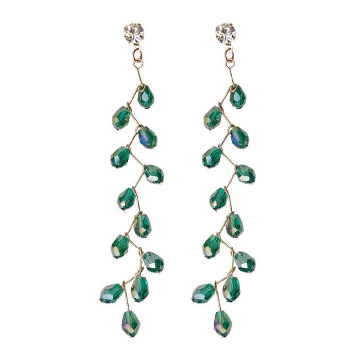 Aretes Largos de Borlas Retro Coreanos, Aretes Simples de Cristal Personalizados, Aretes Femeninos de Cristal Verde, Exquisitos