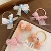 Horquilla con lazo de flores rosas para niña, banda para el cabello para bebé, cuerda para el cabello, pequeña banda de goma, pinza para el cabello