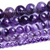 Cuentas sueltas de amatista fantasía natural, cuentas redondas, cuentas para pulsera tejida a mano DIY, accesorios de joyería para pulsera de hombre y mujer