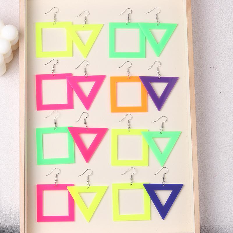 Pendientes Exagerados de Diseño del Siglo XIX Europeo y Americano Pendientes Acrílicos Triangulares Cuadrados de Color Fluorescente Pendientes Pendientes