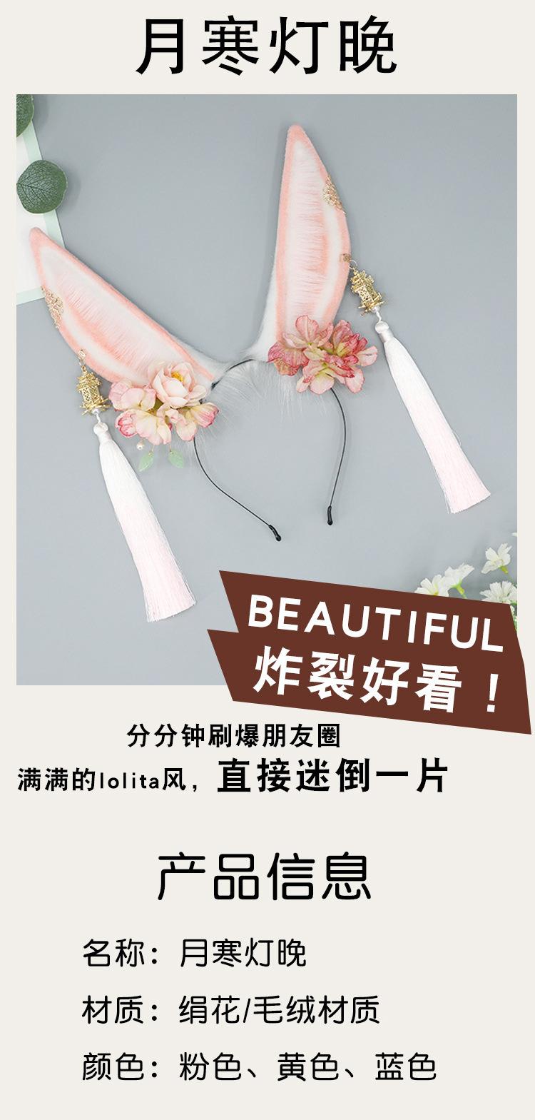 Compra Diadema con orejas de conejo de peluche, accesorio para el cabello de Lolita, estilo Guofeng, con borlas de conejo al por mayor en Joom.pro