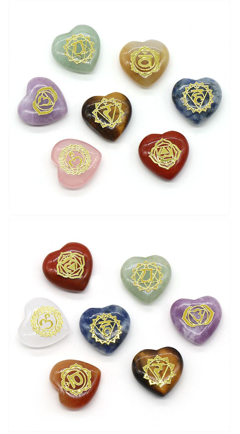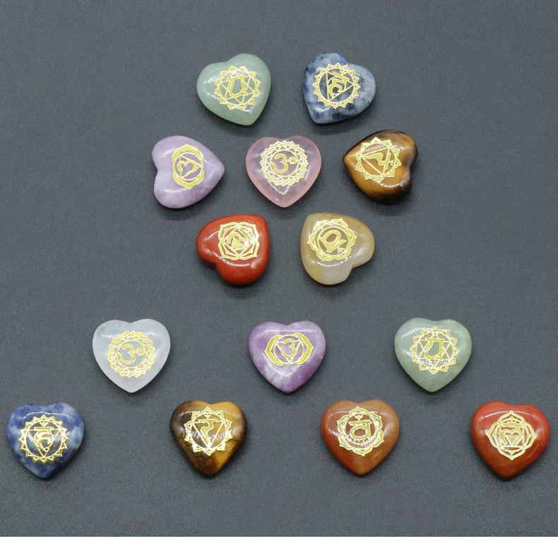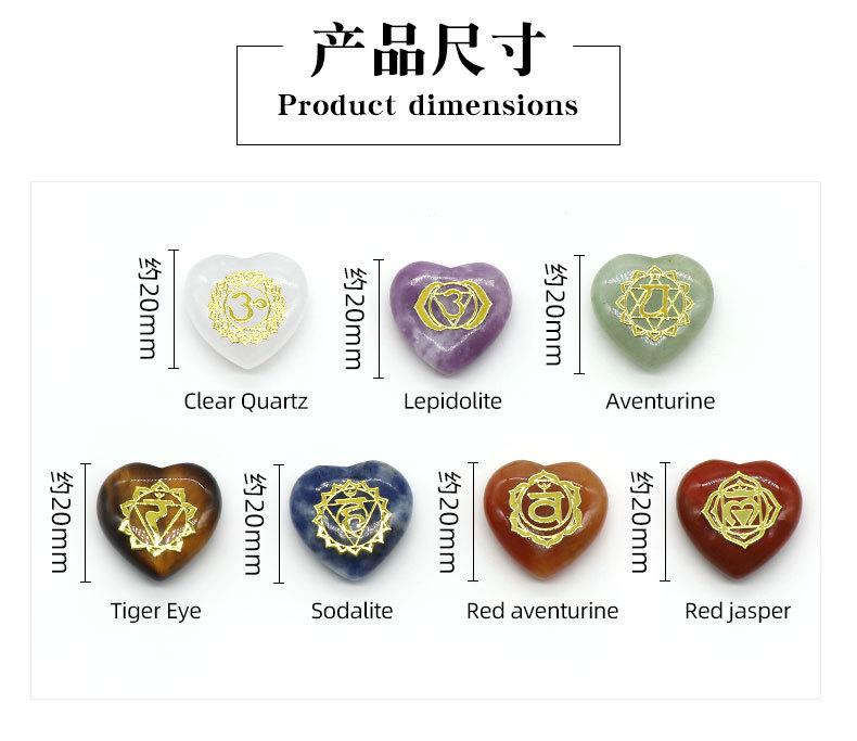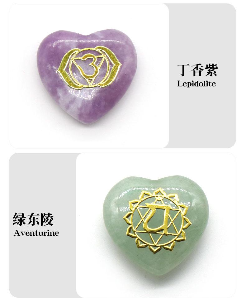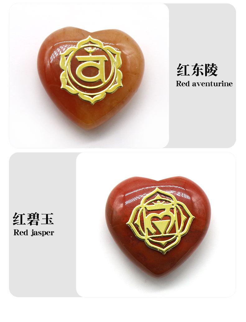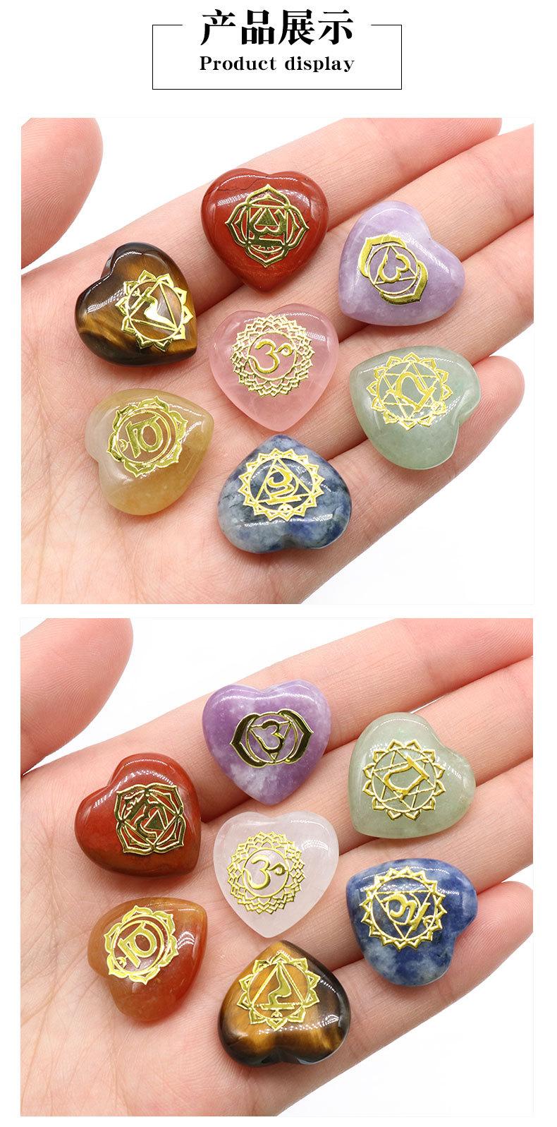 1563 - Símbolo de amor de siete pulsos, 7 unidades, piedra de yoga de ágata de cristal natural, metal, salida de fábrica estándar