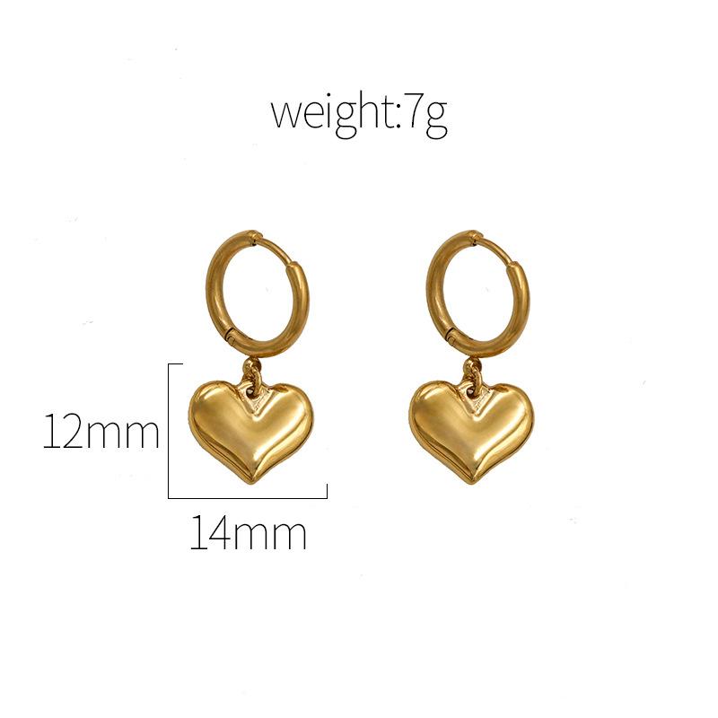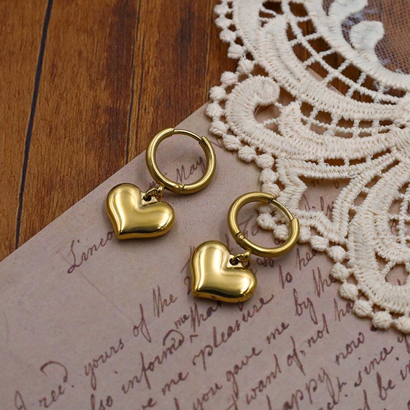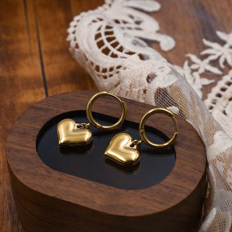 Aretes de acero de titanio INS viento de Europa y Estados Unidos aretes de amor aretes colgantes con forma de corazón dorado aretes de moda con personalidad joyería para niñas