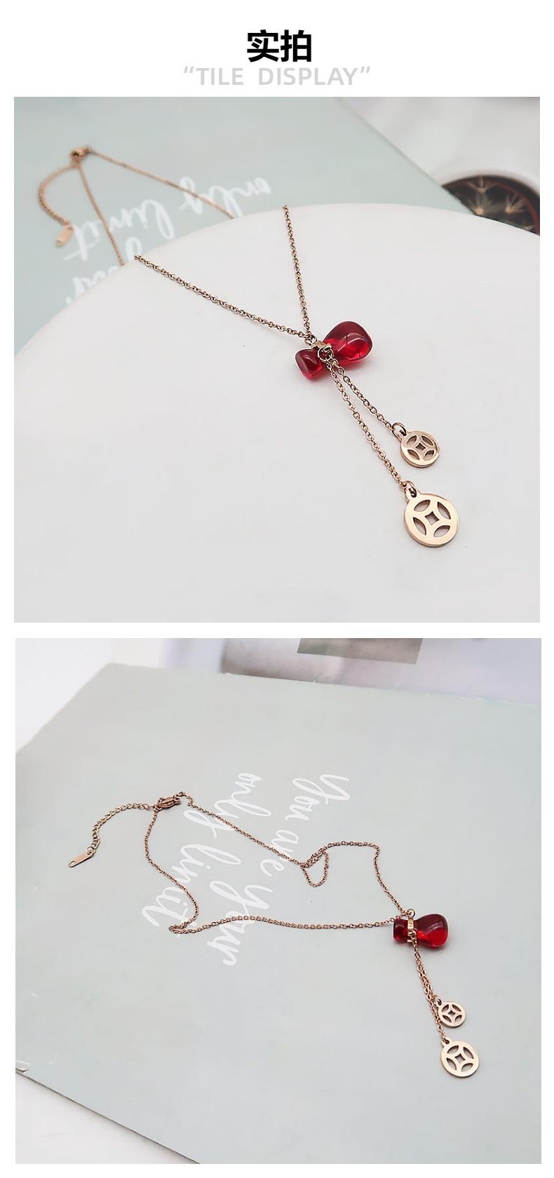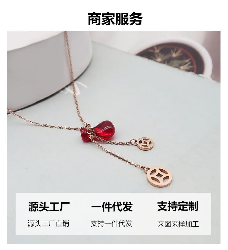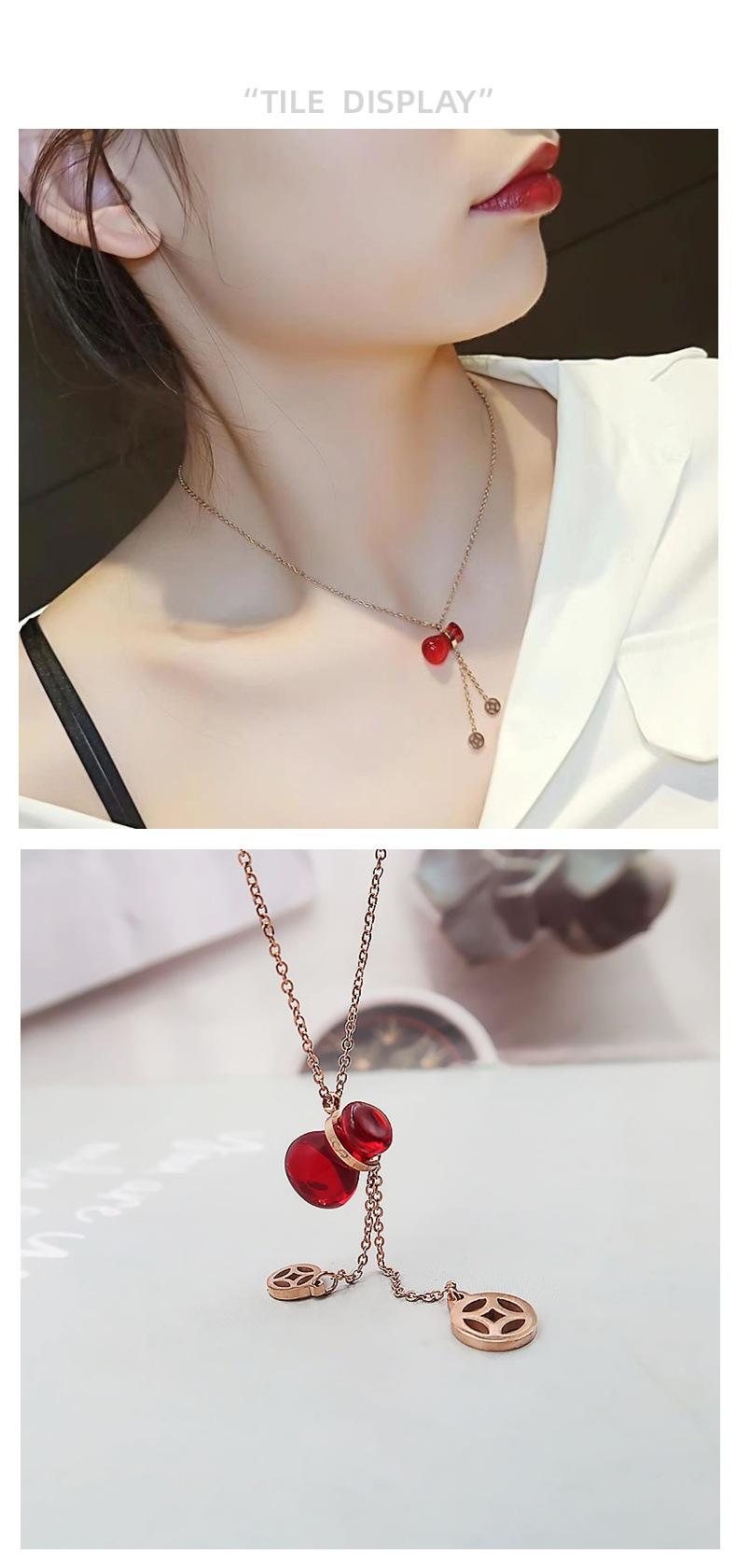 Collar de acero de titanio con colgante de calabaza roja nuevo 2023, moda para mujer, tesoro de la suerte, cadena de clavícula en oro rosa al por mayor