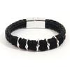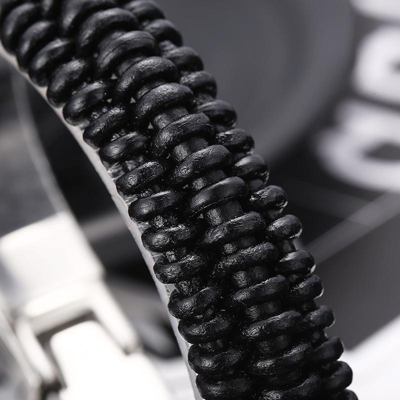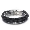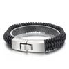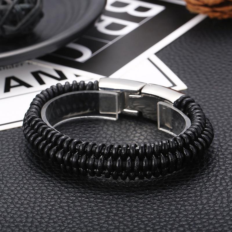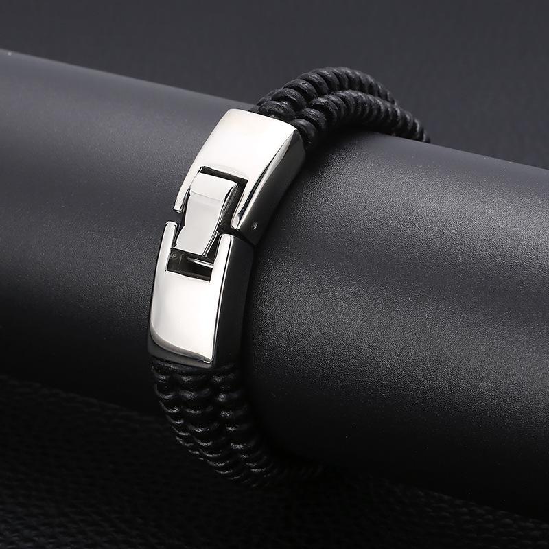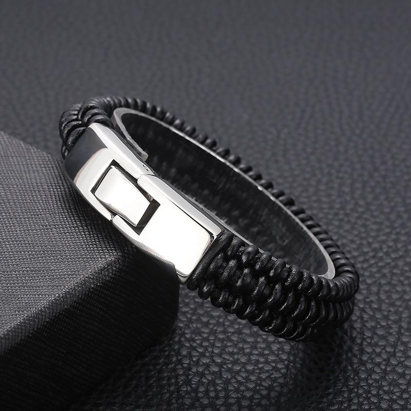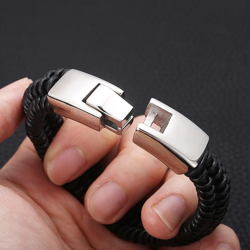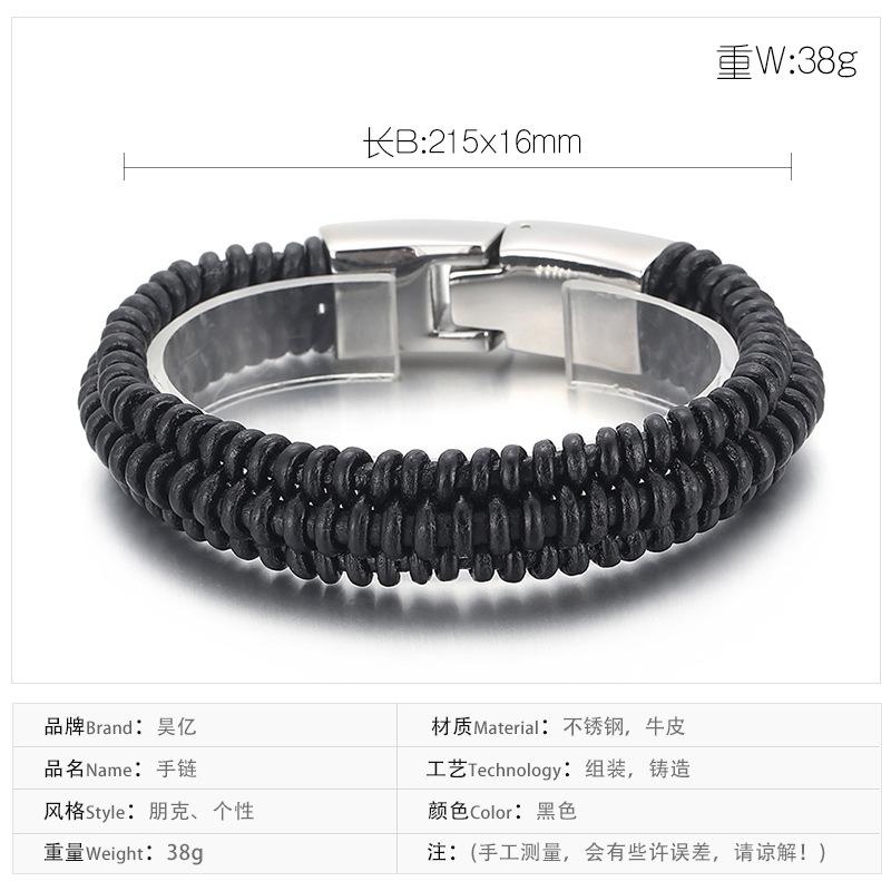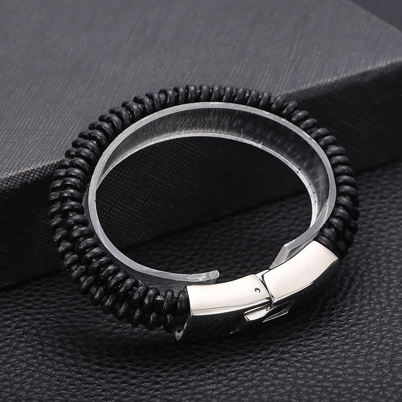 Joyería al por mayor de comercio exterior europeo y americano, pulsera de acero de titanio de moda para hombre con cuerda de cuero vacuno y cierre de resorte de acero inoxidable