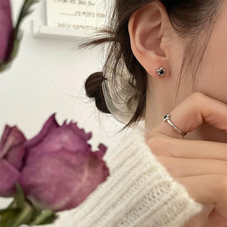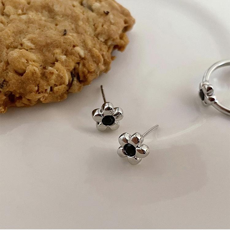 Pendientes minimalistas de metal con pequeñas flores de estilo frío para mujer, estilo coreano, retro, personalizados, sencillos y elegantes que combinan con todo.