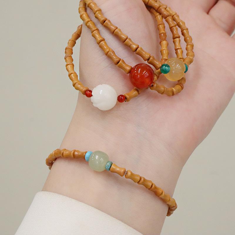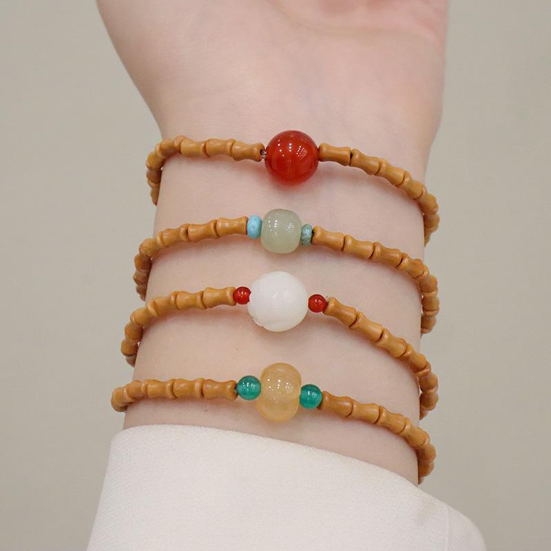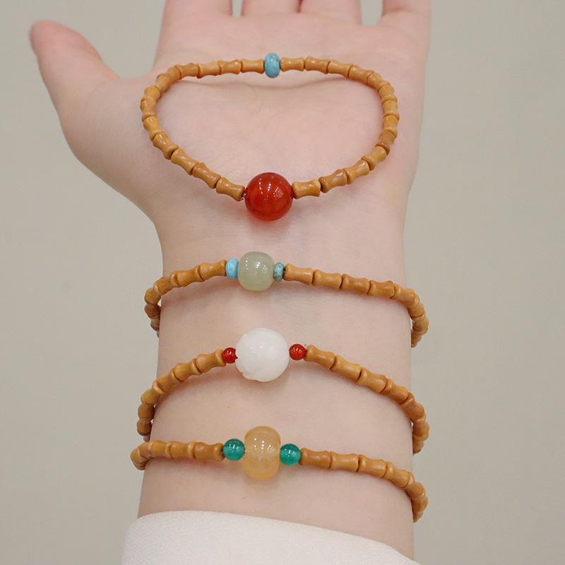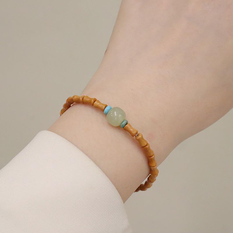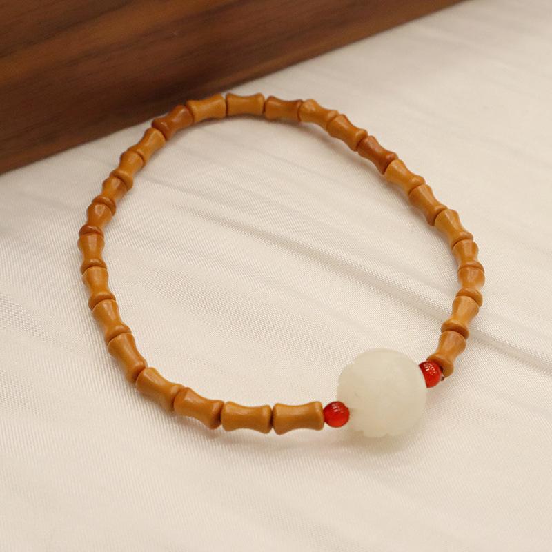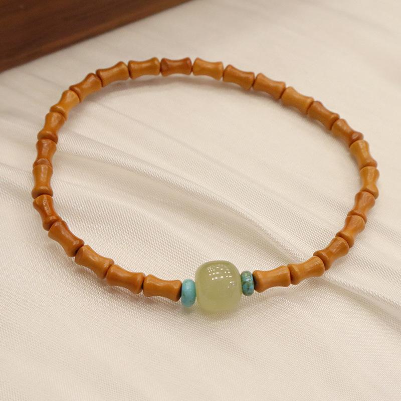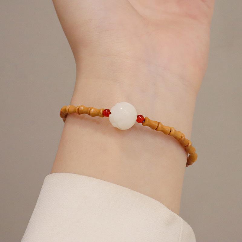 Pulsera de Olivo Natural, Ascendiendo Constantemente, Pulsera de Bambú de Jade Hetian Artística Elegante Vintage Fresca