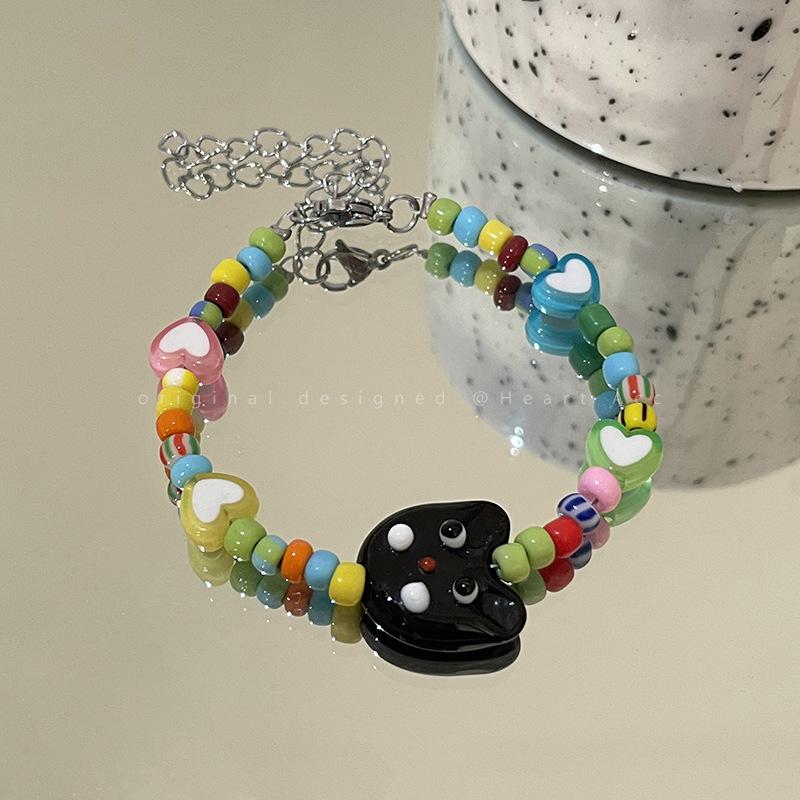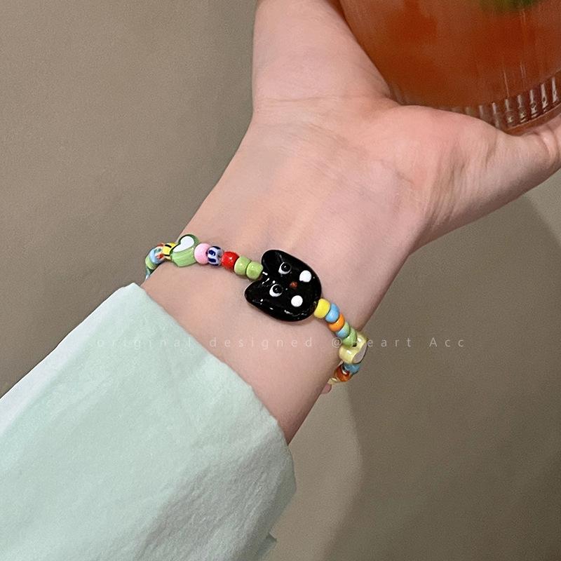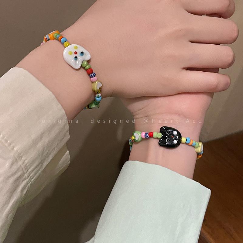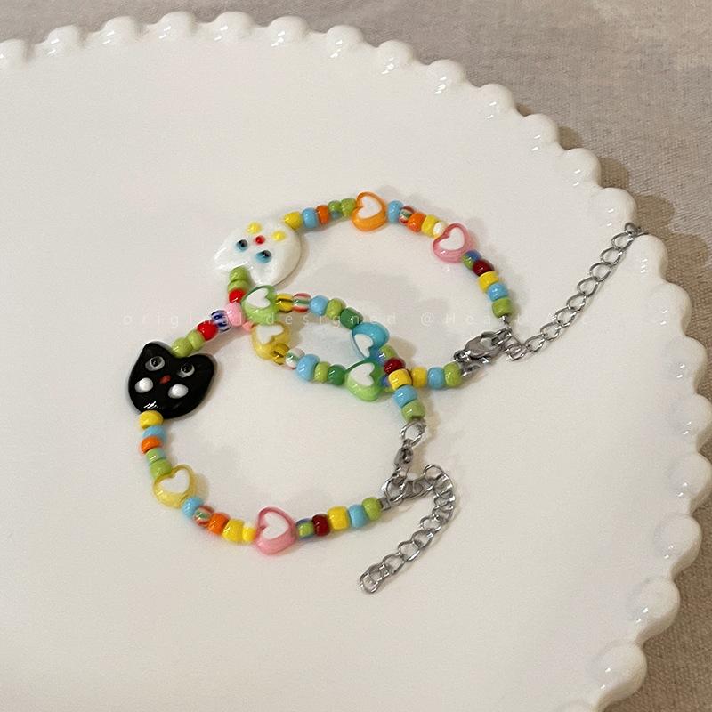 Pulsera de cuentas con diseño de gato de dibujos animados, ideal para parejas, ideal para el verano.