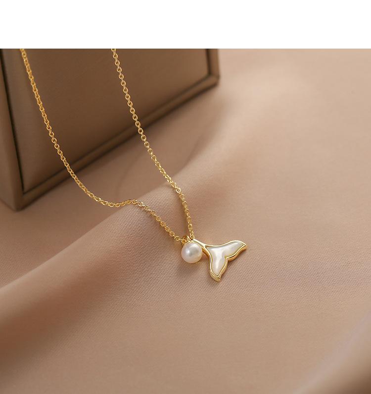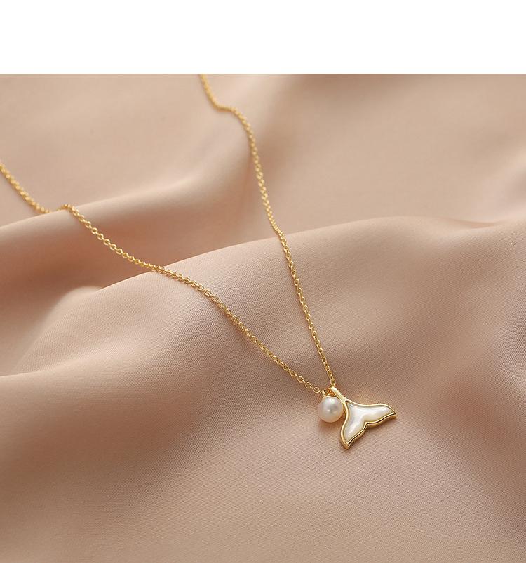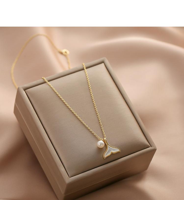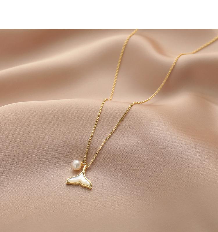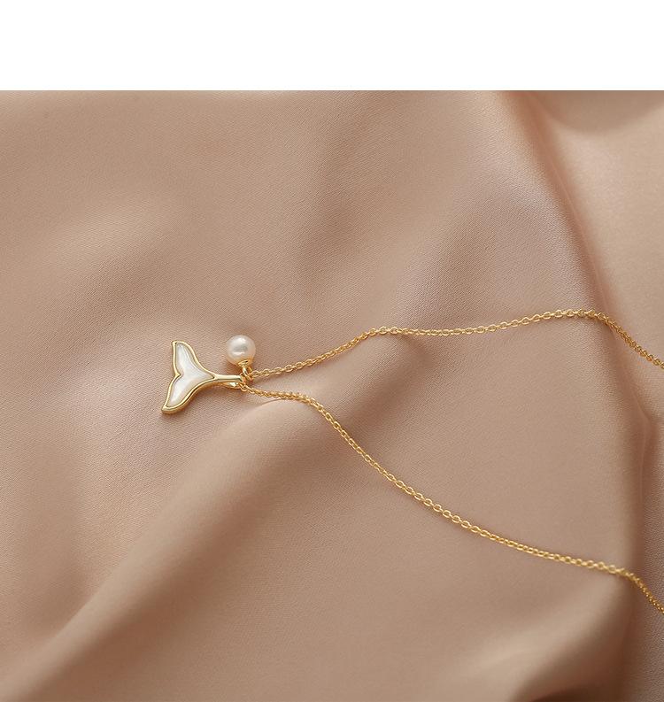 Collar con colgante de cola de sirena y delfín con perlas naturales de agua dulce para mujer, diseño original de nicho, cadena de clavícula ligera y de lujo.