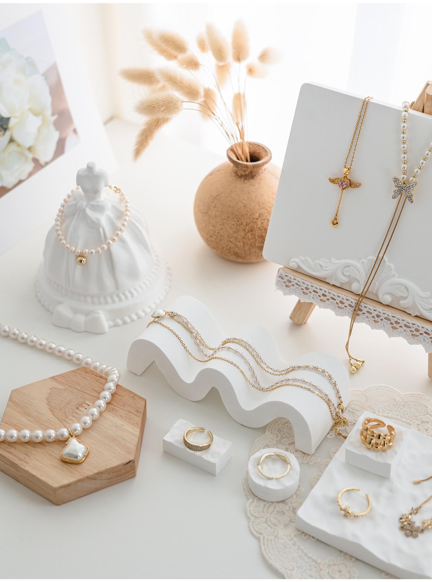 Exhibidor de collar blanco, estante para colgantes, estante para joyas, yeso, tallado estilo europeo, tablero exhibidor de joyas, accesorios para vivo, estante para joyas