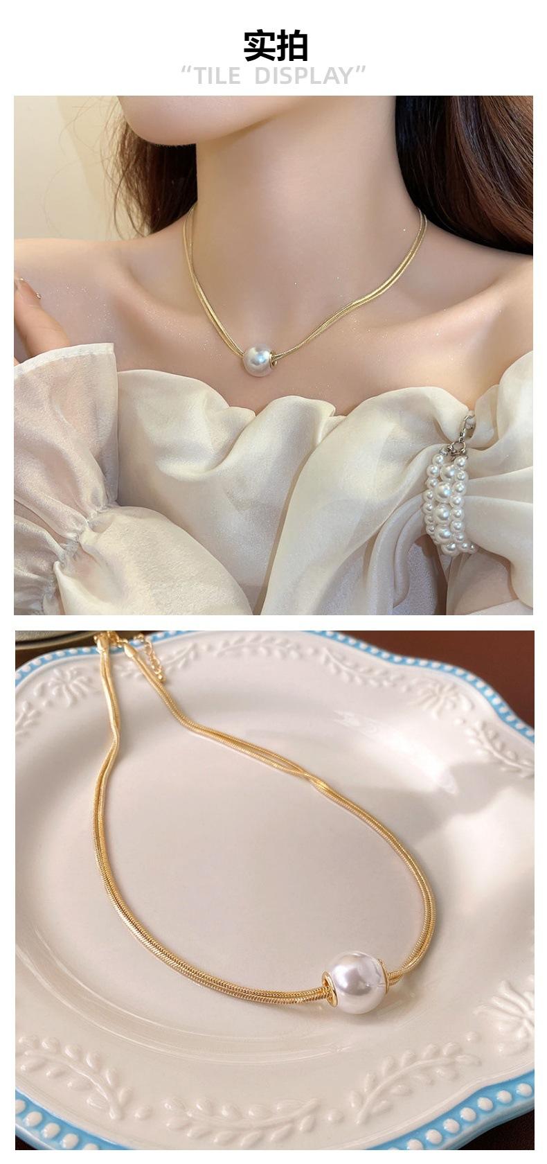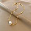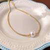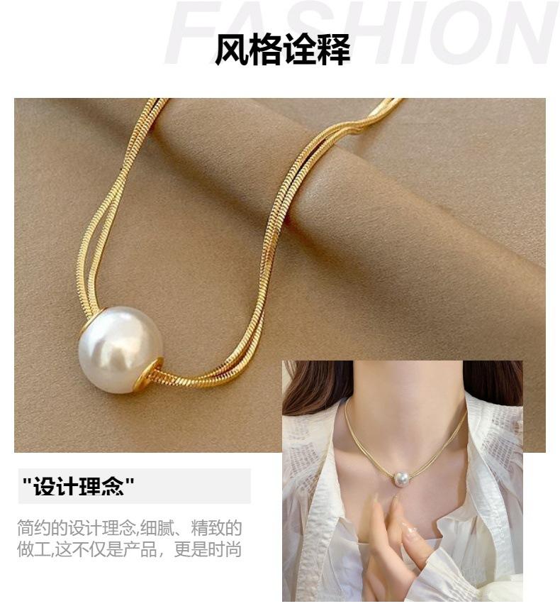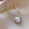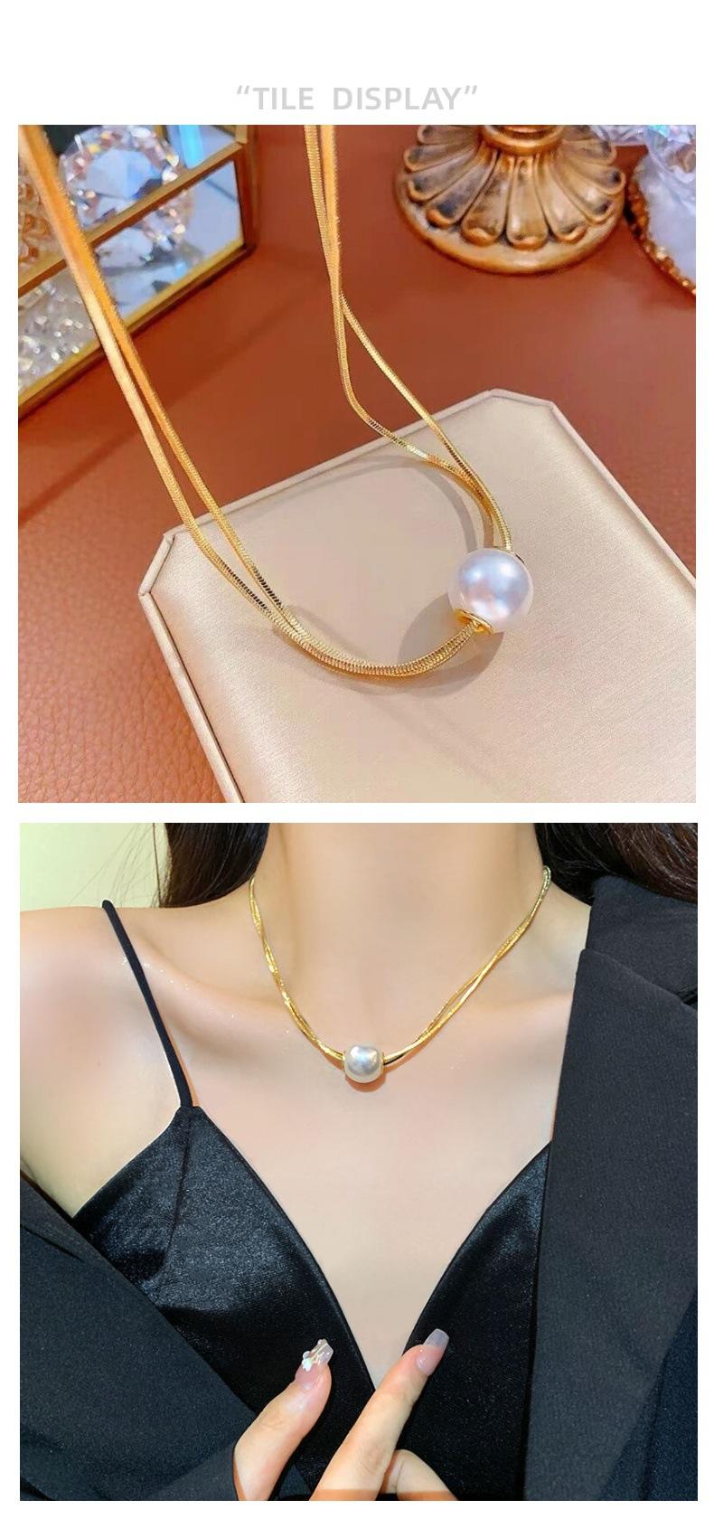 Nuevo collar de acero de titanio con colgante de perla única francesa retro para mujer, de doble capa, moderno y de alta calidad, con cadena de clavícula.