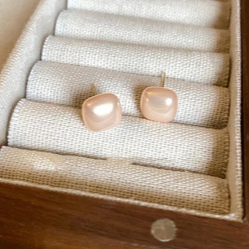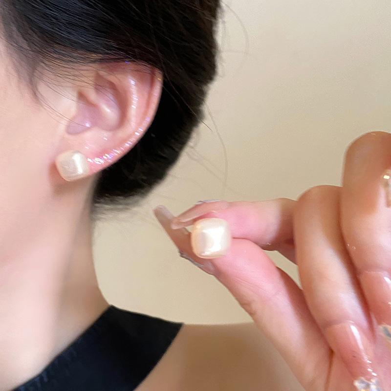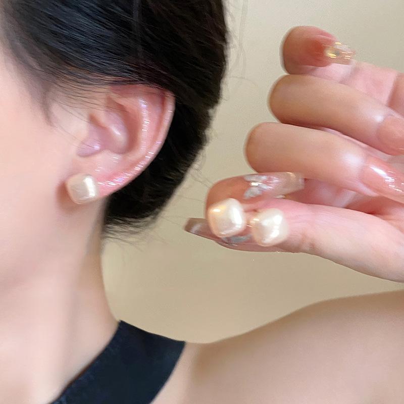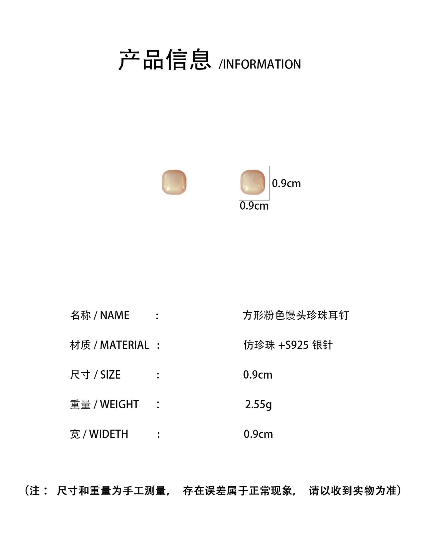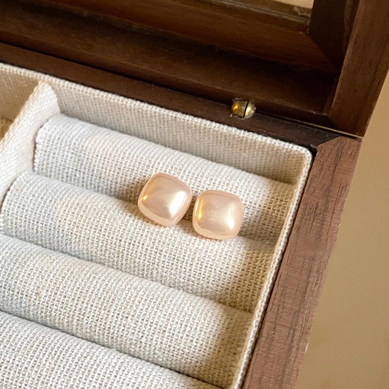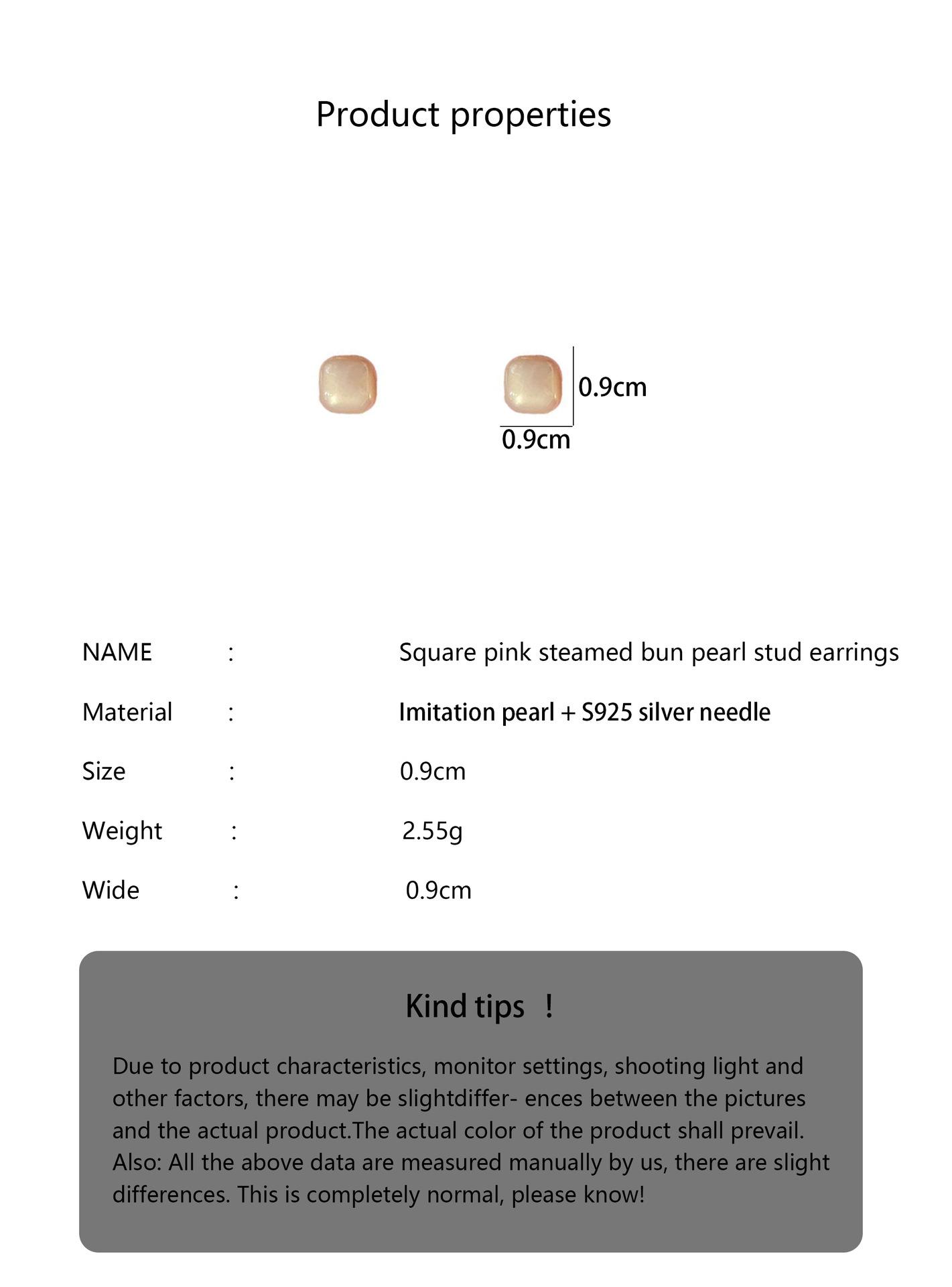 Pendientes cuadrados de perla rosa al vapor para mujer, 2024, nuevos pendientes ligeros de lujo de alta gama, pendientes sencillos y dulces para niña.