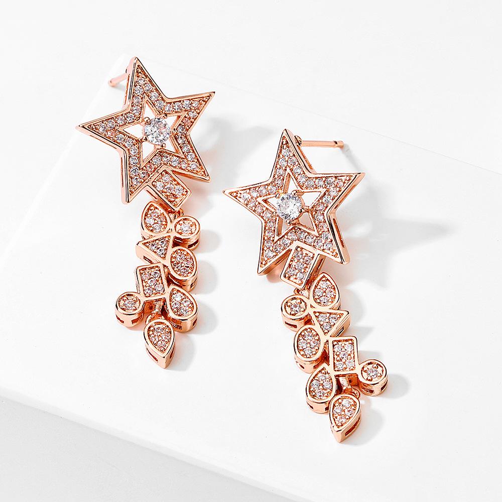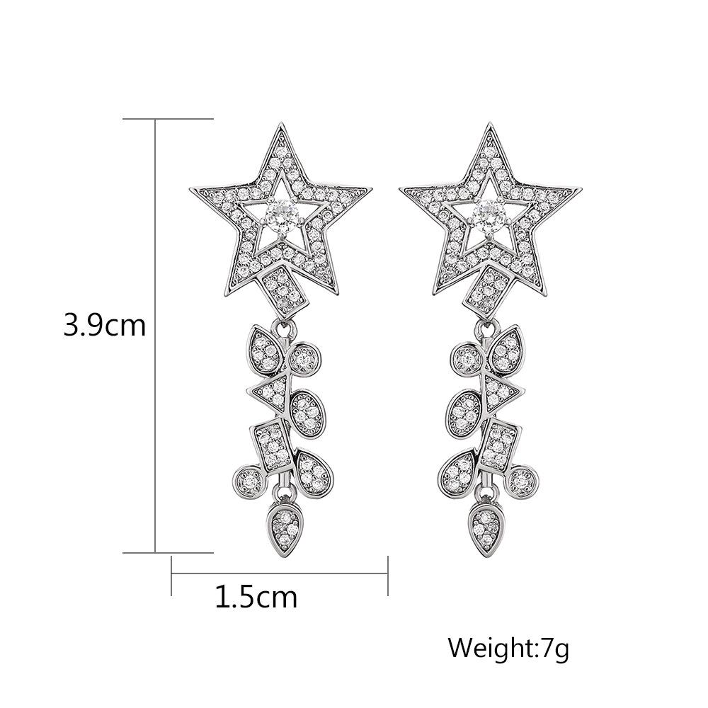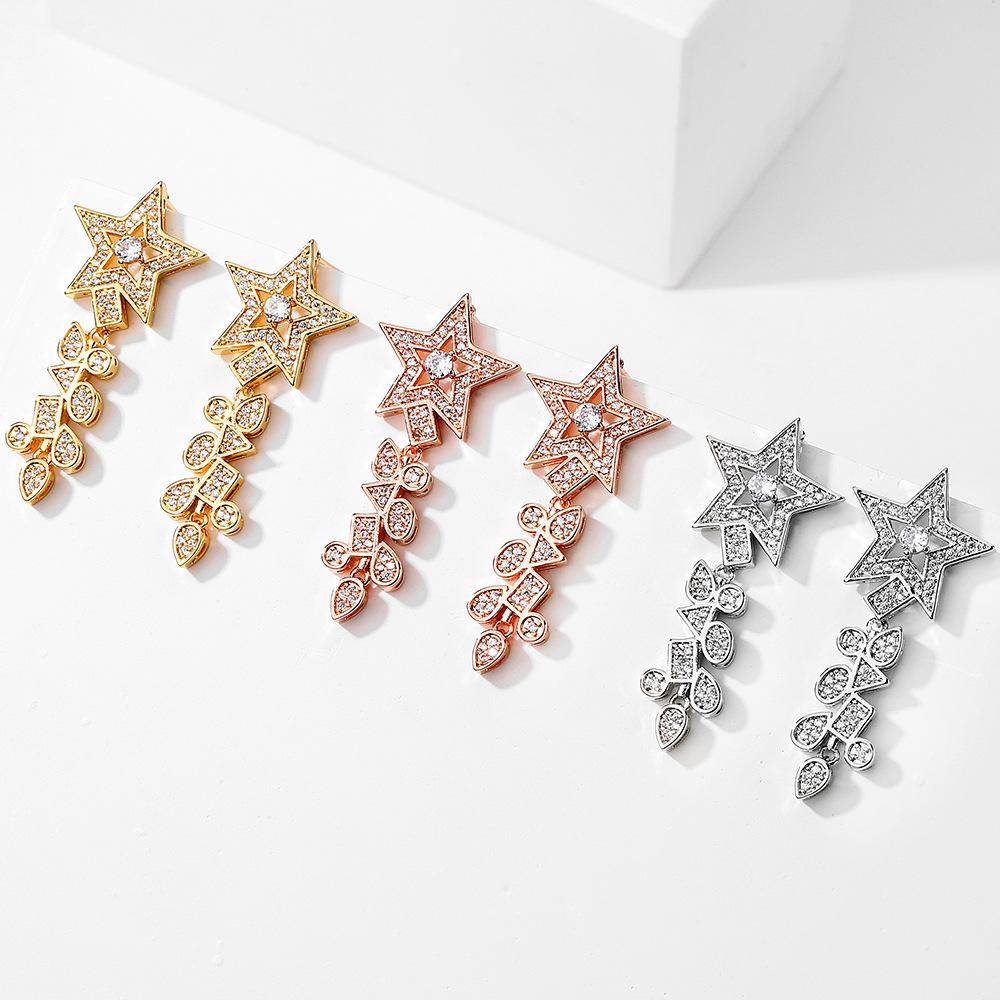 Pendientes RAKOL elegantes con borlas largas de estrella de cinco puntas y personalidad, ligeros y de lujo con microincrustaciones de circonitas, venta al por mayor