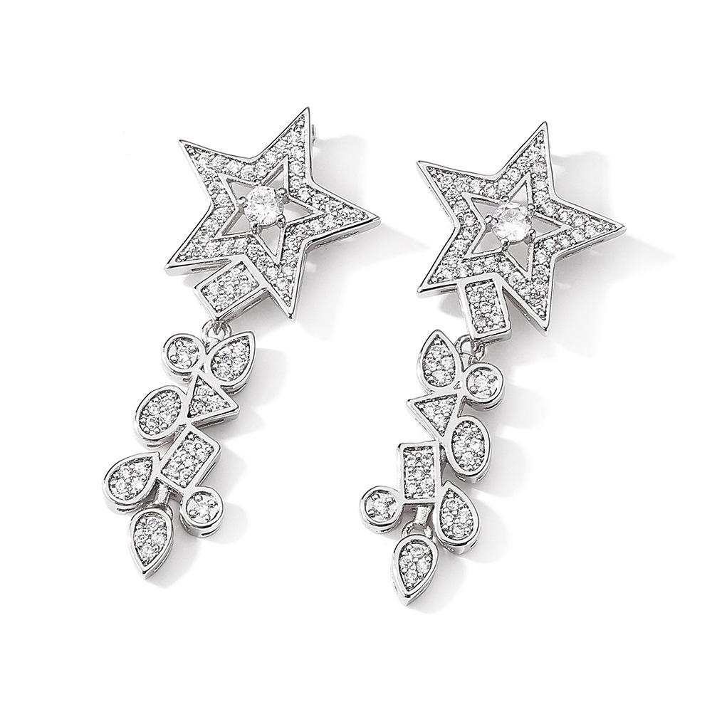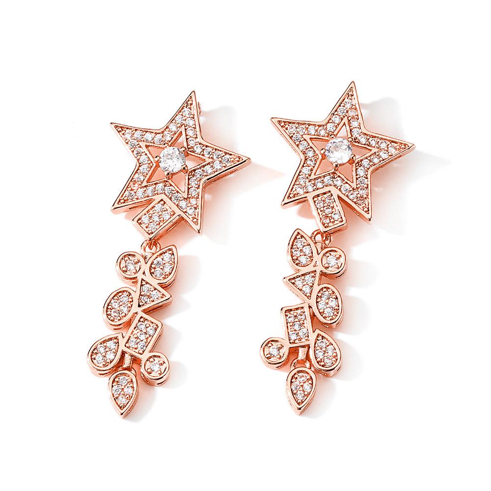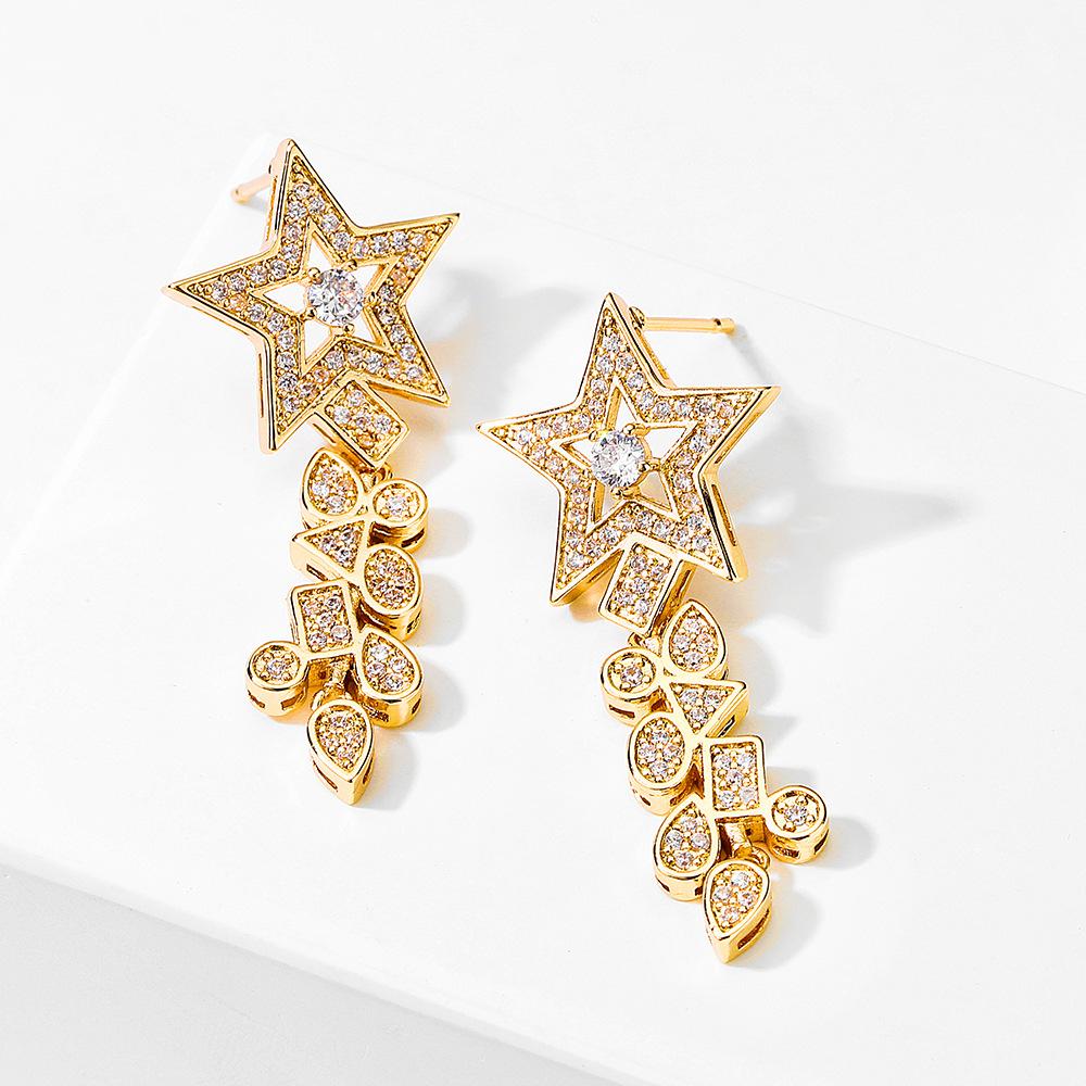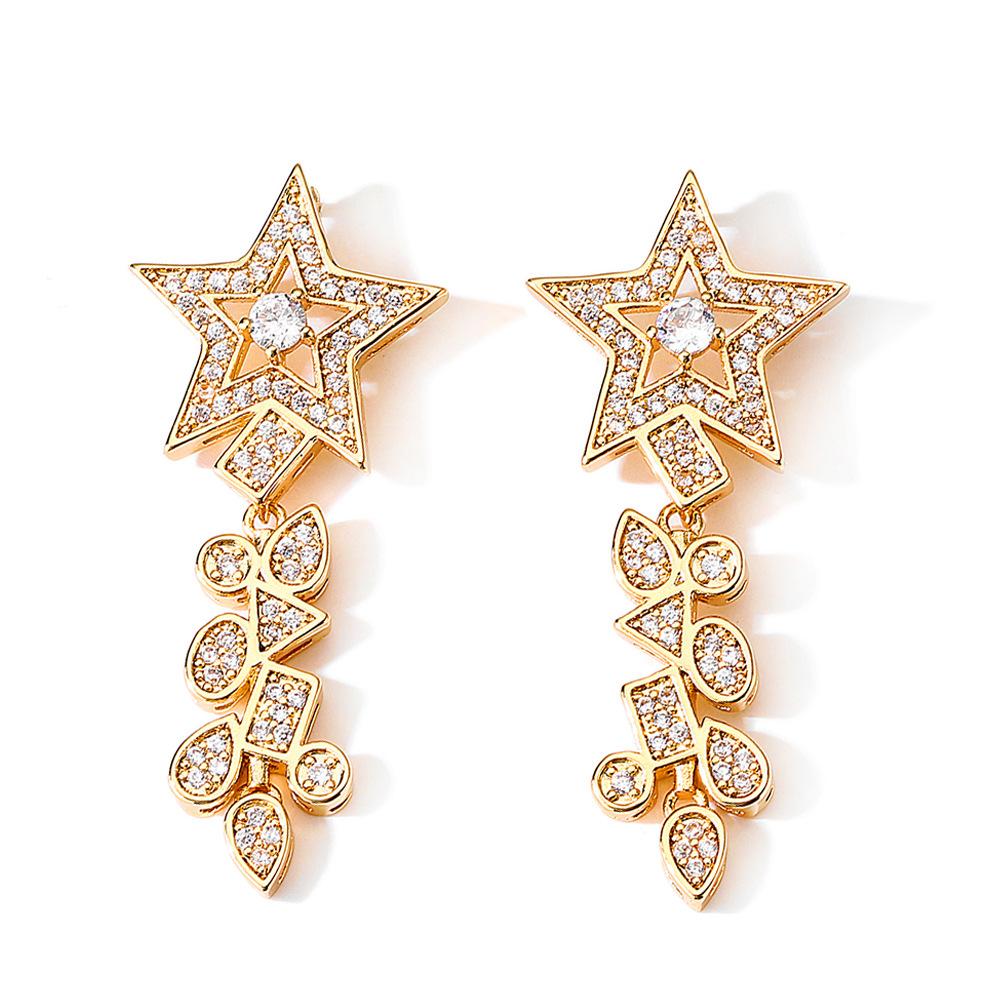 Pendientes RAKOL elegantes con borlas largas de estrella de cinco puntas y personalidad, ligeros y de lujo con microincrustaciones de circonitas, venta al por mayor