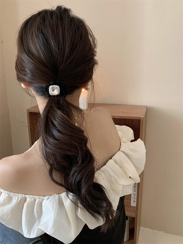 Cuerda para el Cabello con Pedrería de Estilo Minimalista Anillo para el Cabello de Intestino Grueso Diadema 2025 Nueva Banda Elástica para el Cabello de Alta Gama Tocado Elegante para Mujeres