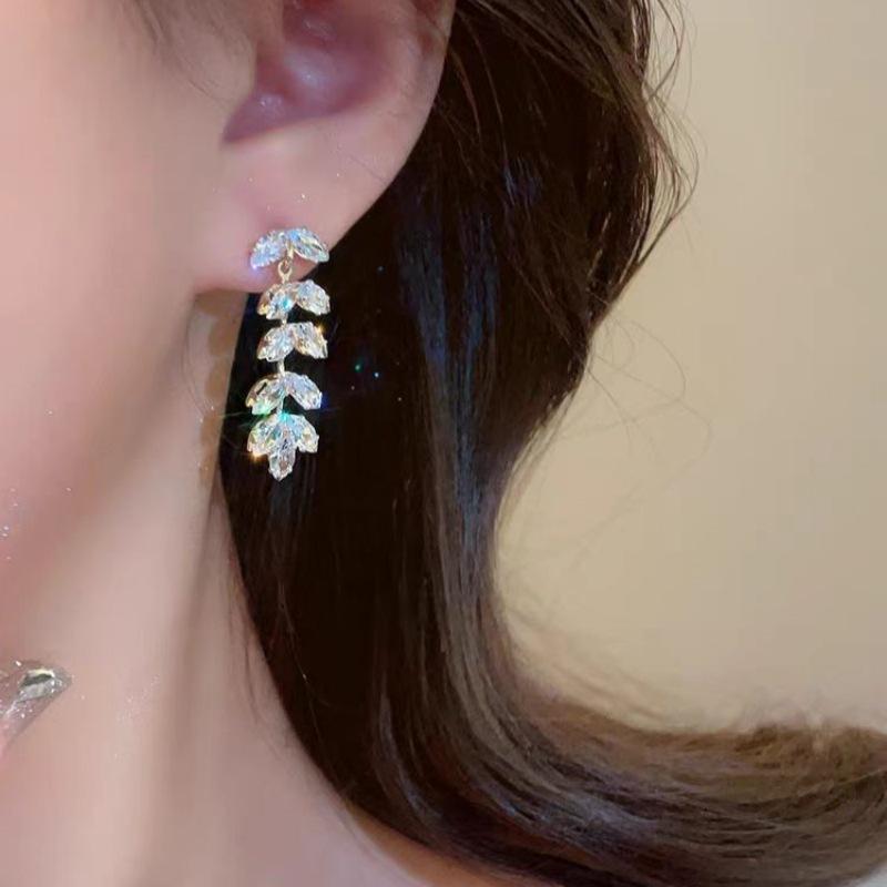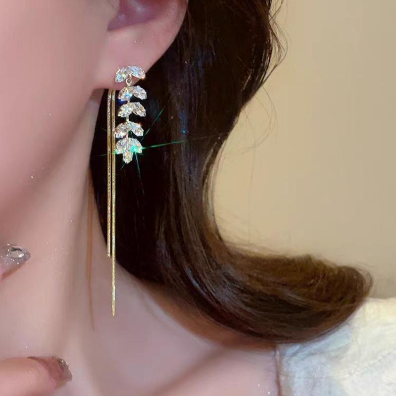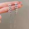 Pendientes de borla de circonita de trigo de alta gama franceses, pendientes largos retro para mujer, pendientes exquisitos de Joker de moda al por mayor