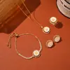 Collar de Cadena Clavicular Clásico Transfronterizo con Forma Cuadrada Gruesa, Diamante Completo, Gema Rosa de Lujo Ligero, Set de Collar y Aretes