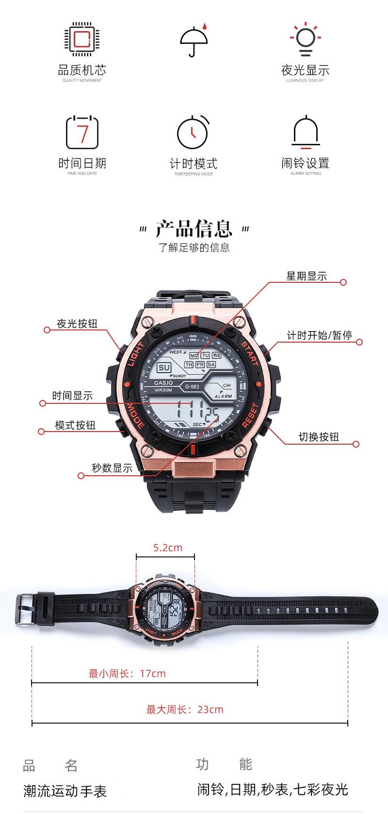Reloj electrónico deportivo de moda personalizado multifuncional para correr de noche luminoso colorido reloj deportivo decoraciones juveniles