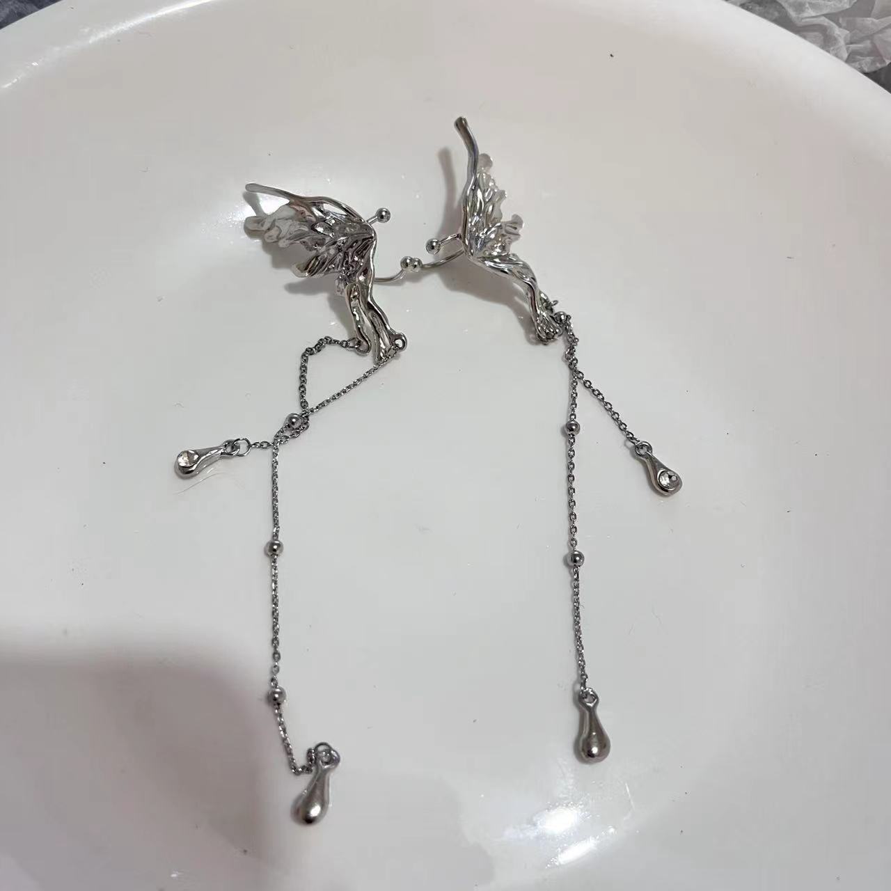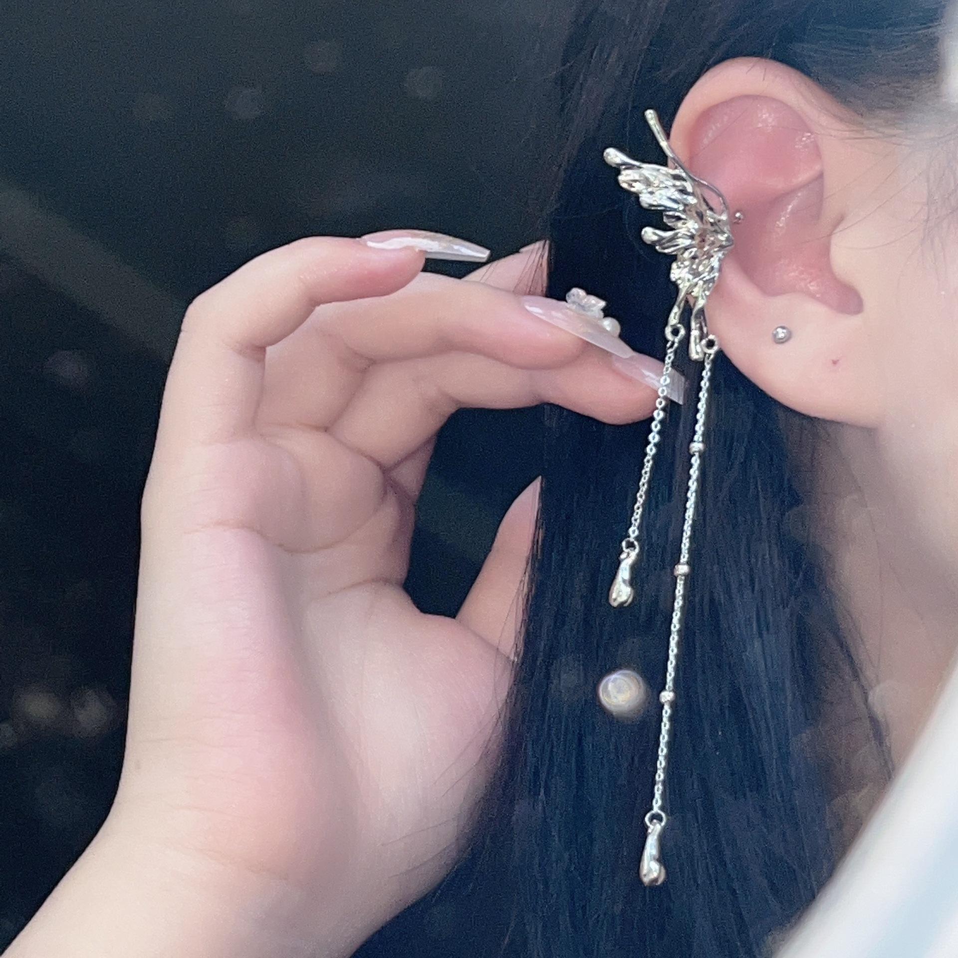 Pendientes de elfo con clip de hueso para oreja de mariposa de súper hada de estilo francés para mujer, diseño de nicho con clip de oreja sin oreja, borla con personalidad y gota de agua.