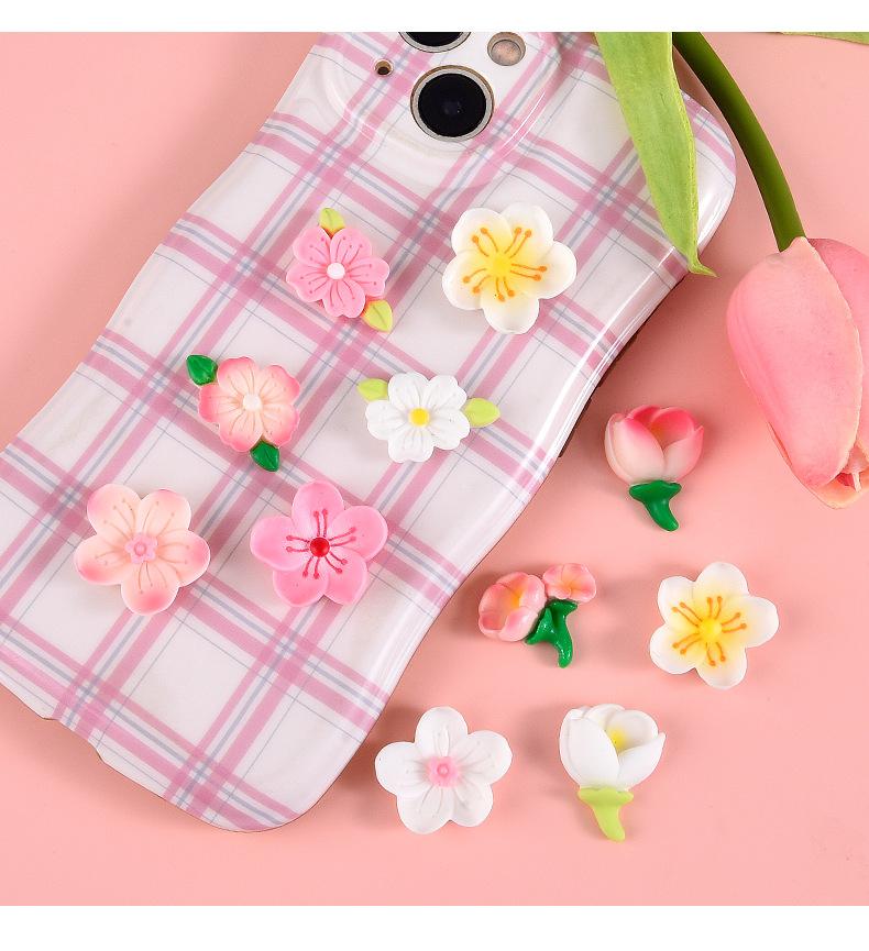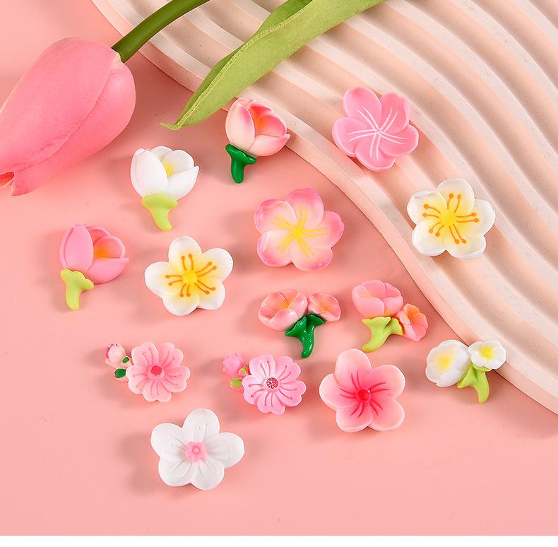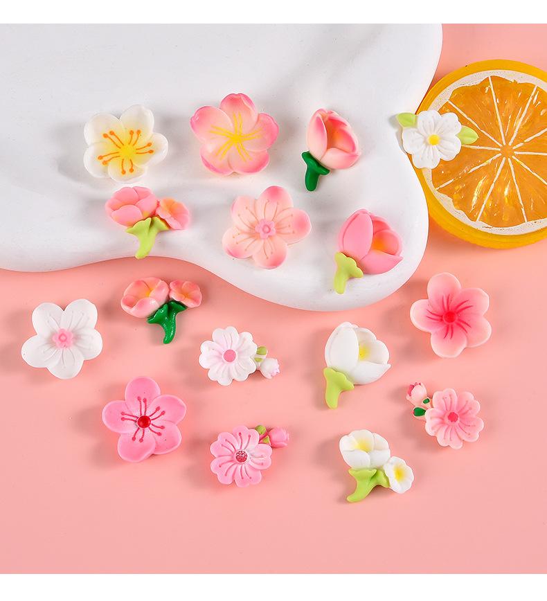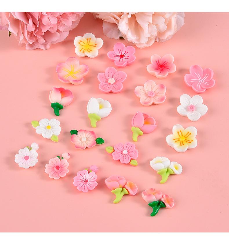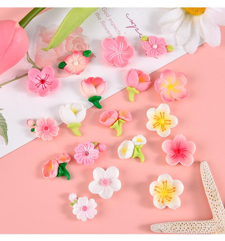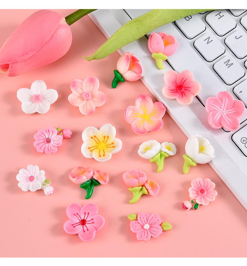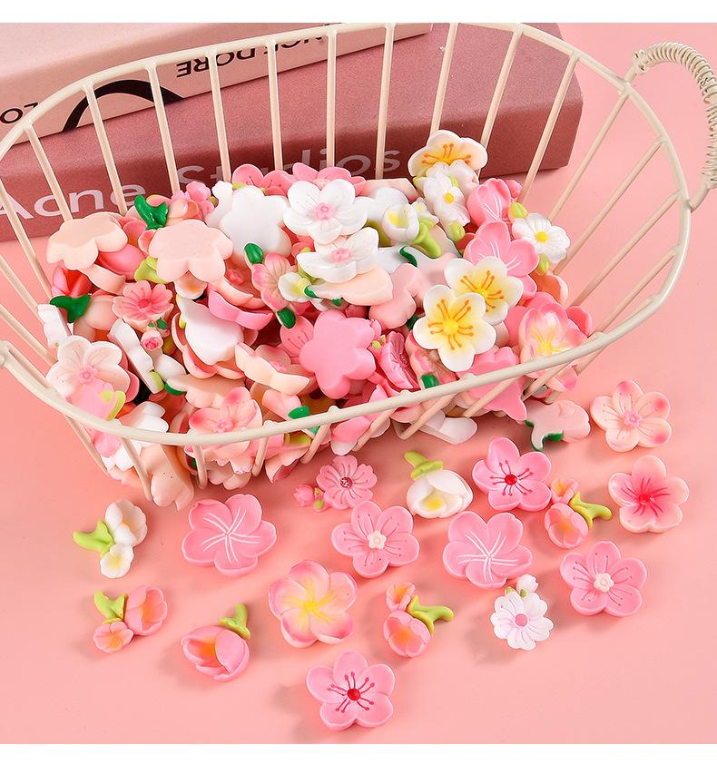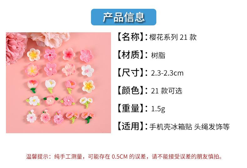 Nuevos 21 accesorios de resina con diseño de flor de cerezo dulce, hechos a mano, paquete de material de bricolaje, pegatinas para la carcasa del teléfono móvil, pegatinas para el refrigerador, cuerda para el cabello, accesorios para el cabello, pegatinas