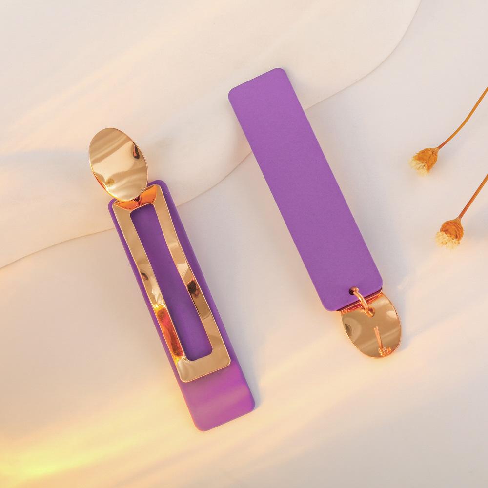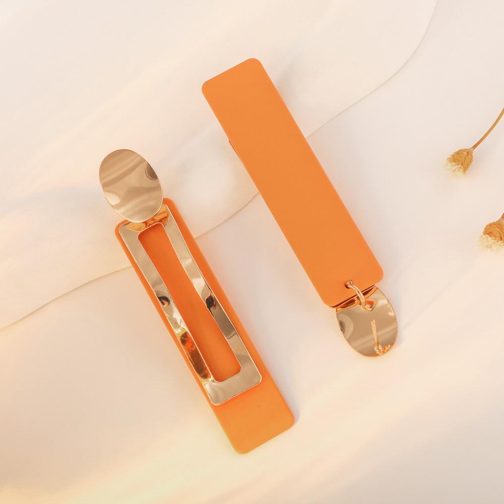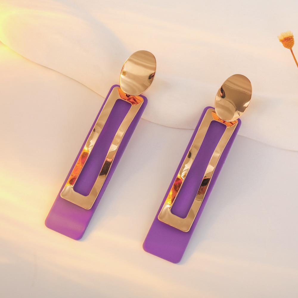 Pendientes de metal rectangulares geométricos de color pintura en aerosol con personalidad de nicho de lujo ligero de moda francesa al por mayor