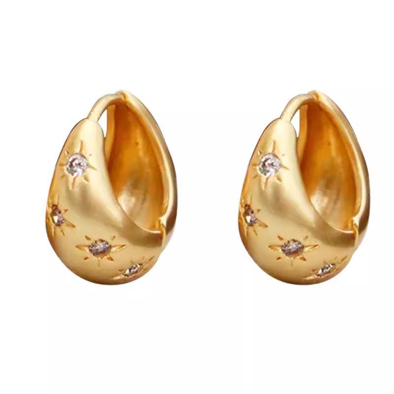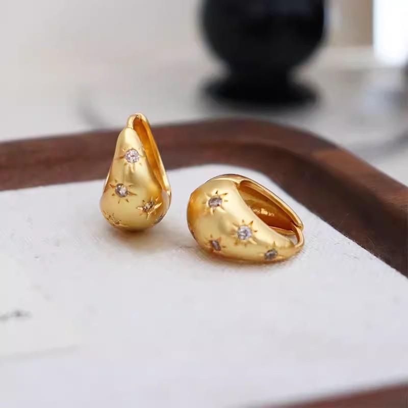 Aretes Retro Franceses Bamang Estrella Gota de Agua Zircón Aretes Lujo Ligero Nicho Alta Gama Simples Moda Aretes de Hebilla para la Oreja