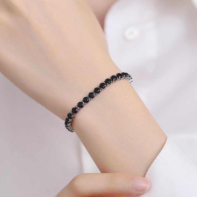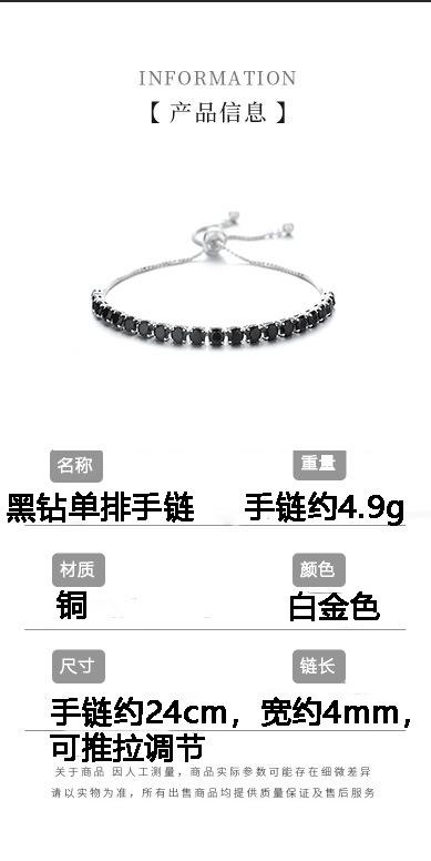 Pulsera de una sola fila de diamantes negros simples de moda europea y americana, diseño de nicho de moissanita de imitación para mujer, joyería creativa que combina con todo.