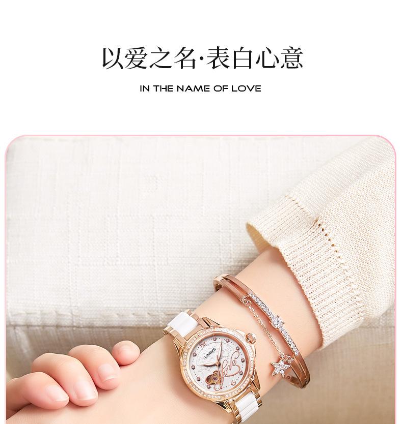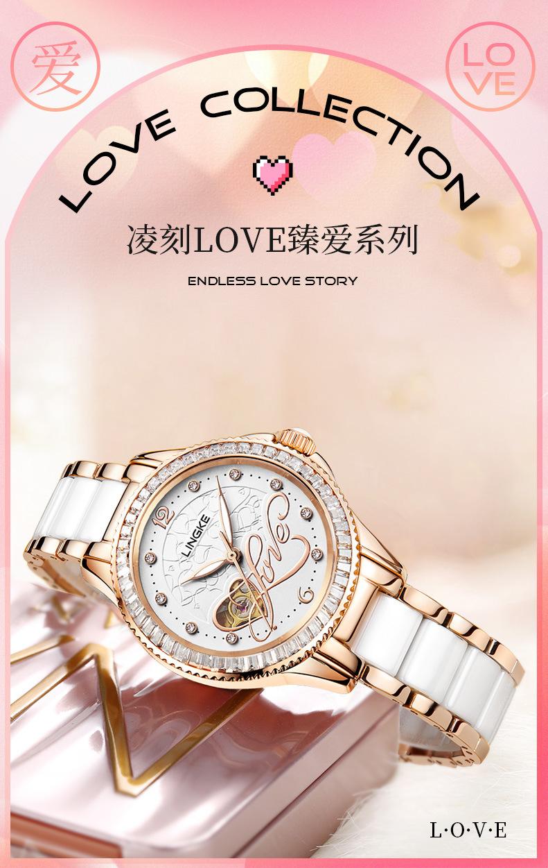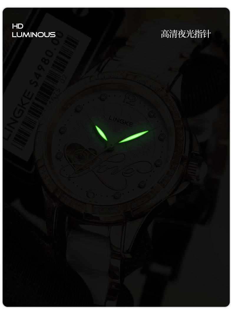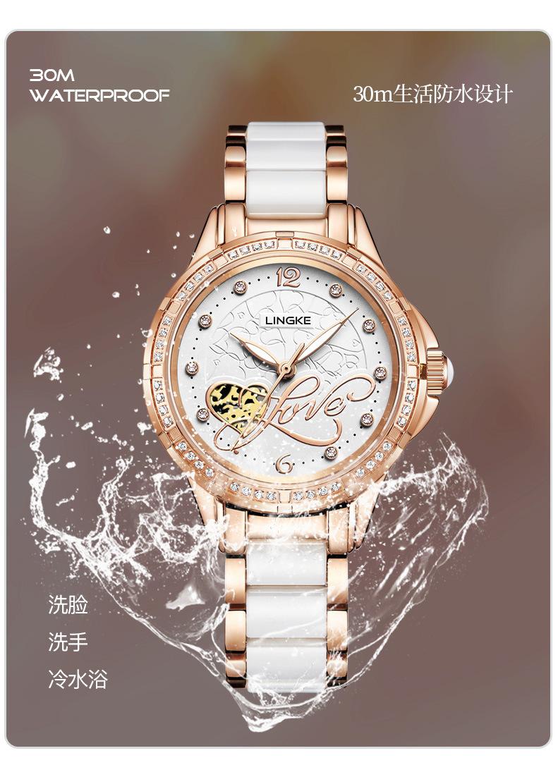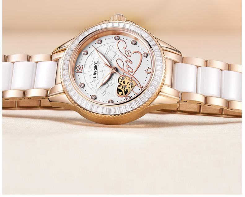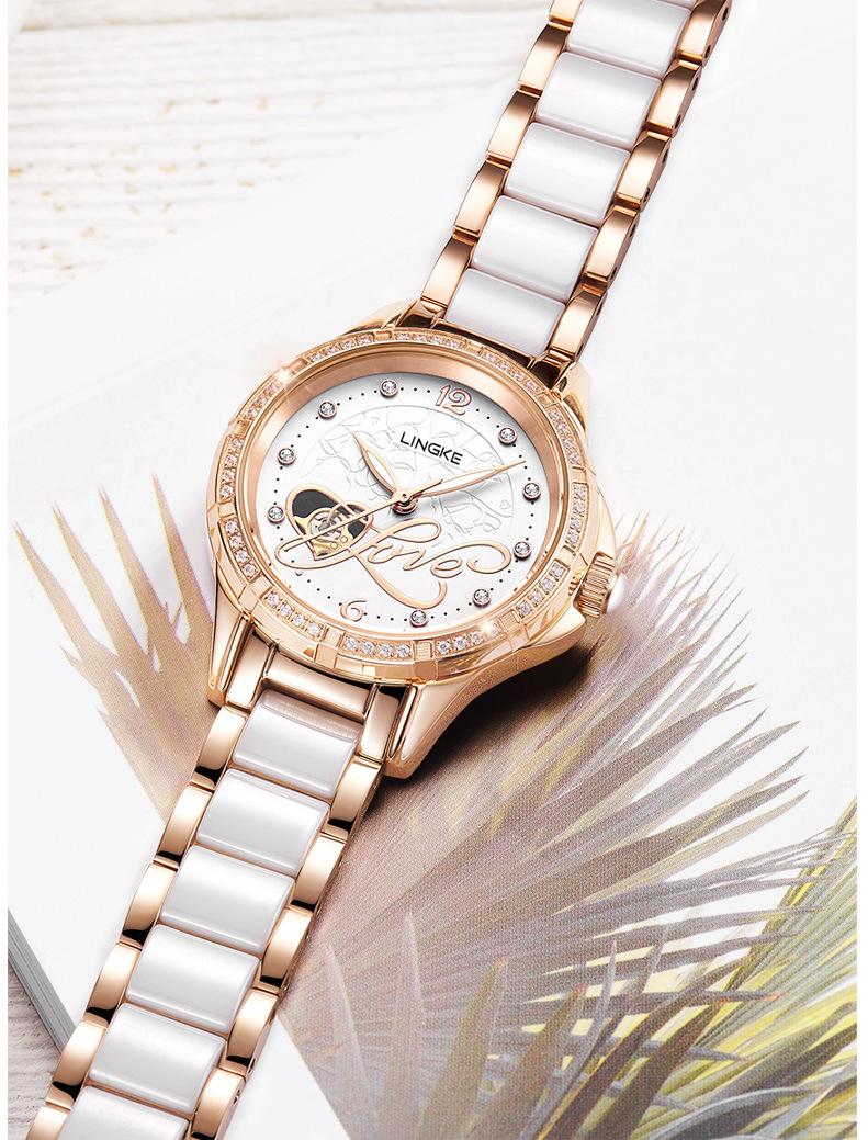 Reloj de Mujer LINGKE Amor Amor RELOJ Diamante Regalo Comercio Exterior Transfronterizo Reloj de Mujer de Cuarzo Cerámico de Alta Gama