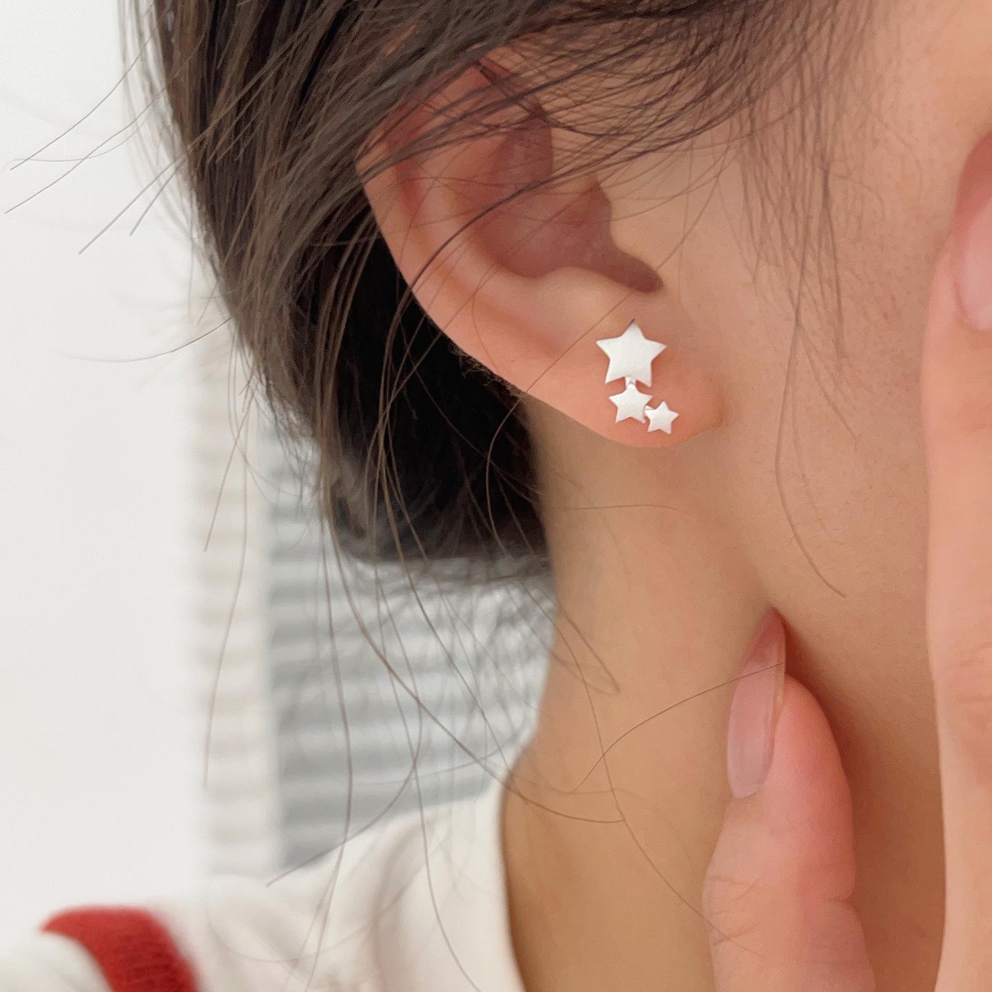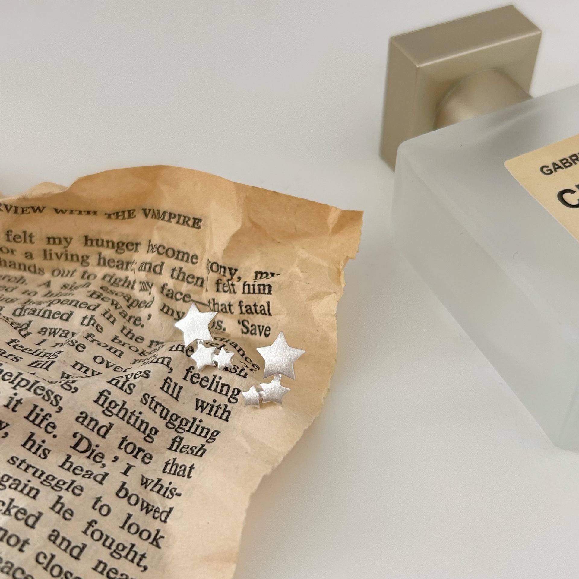 Compra Pendientes de estrella de cinco puntas cepillados mate de plata esterlina S925, diseño de nicho femenino, estilo ins, pendientes de personalidad de moda al por mayor en Joom.pro