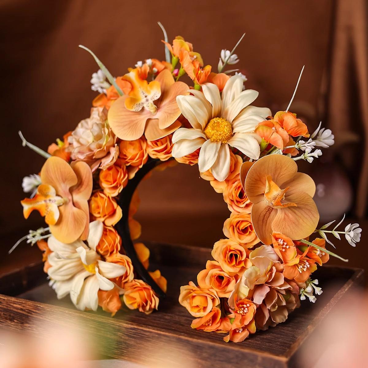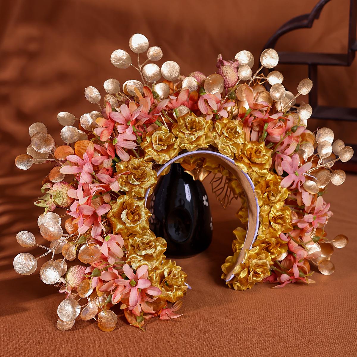 Quanzhou Adorno para el Cabello Flor Horquilla Tocado Estilo Étnico Corona de Flores Flor de Seda Antigua Accesorios para el Cabello Diadema Integrada de Doble Cara Accesorios Hanfu