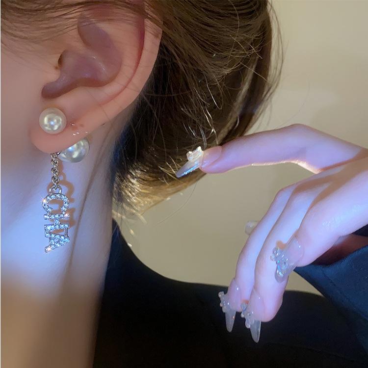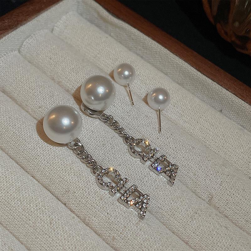 Pendientes de perlas para mujer, pendientes franceses delanteros y traseros, diseño de nicho de alta calidad, pendientes Sense 2023, nuevo estilo, lujo ligero