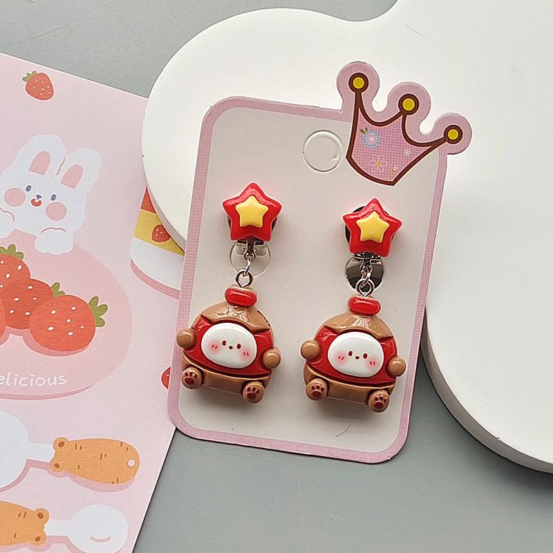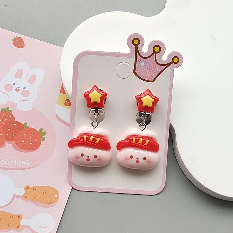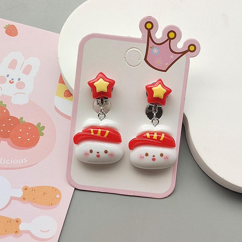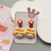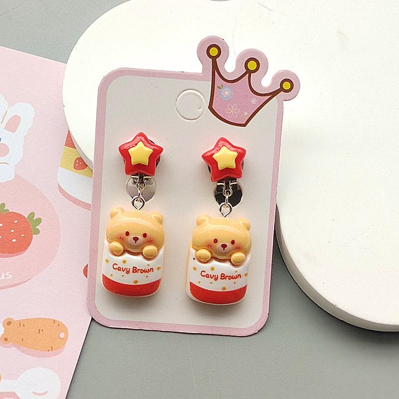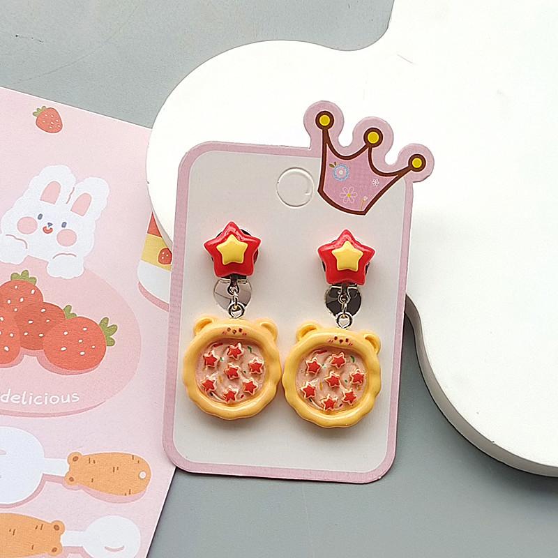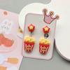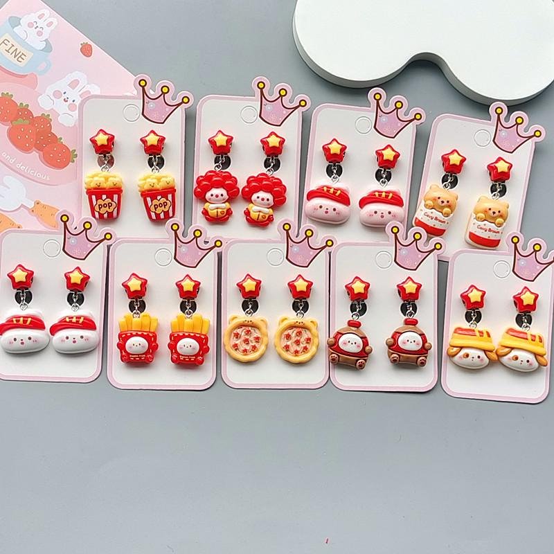 Pendientes colgantes sin orejas con clip para las orejas para niños con diseño de papas fritas, palomitas de maíz y cola de dibujos animados de joyería roja grande para estudiantes