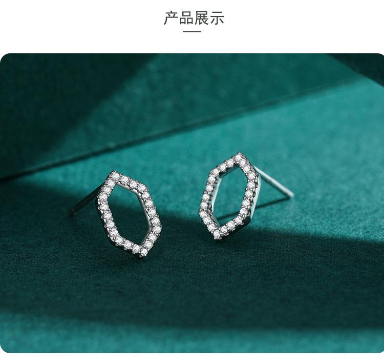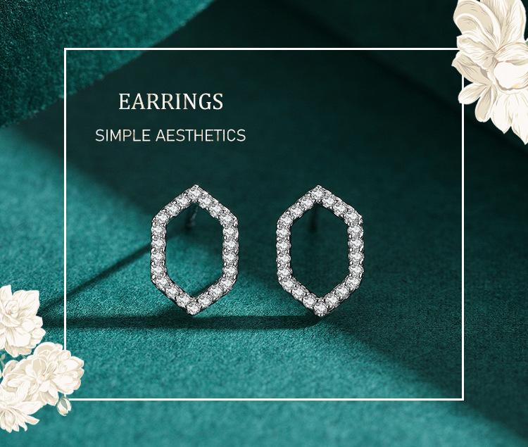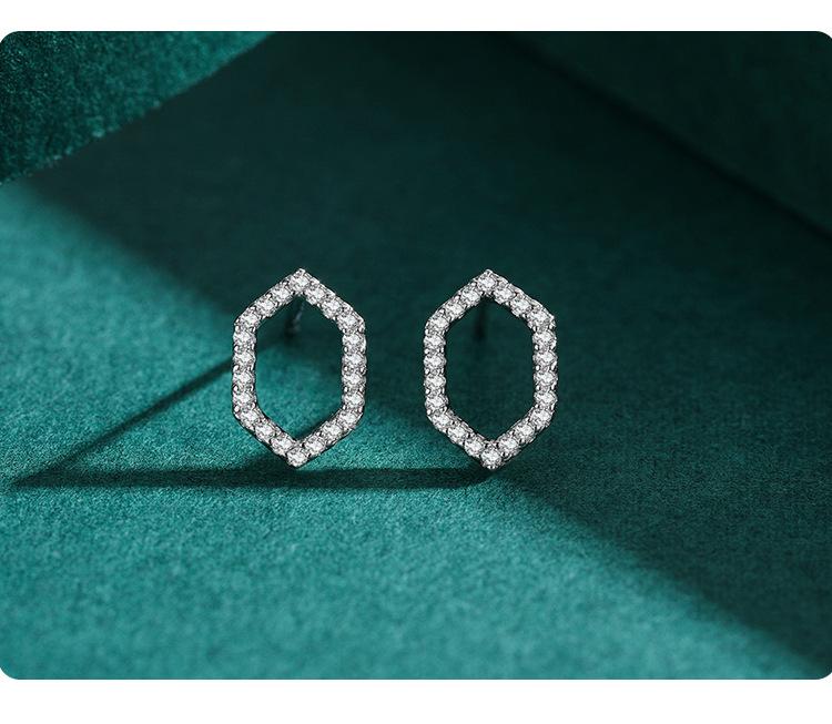 Pendientes geométricos de plata de ley s925 para mujer, de moda europea y americana, con diamantes huecos, elegantes y combinables.
