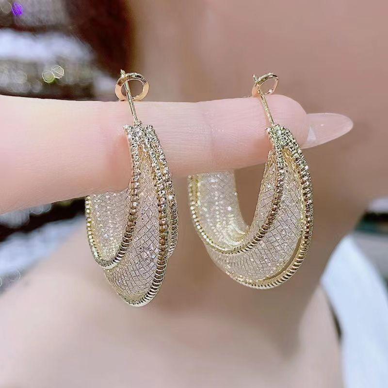 Pendientes de malla metálica, pequeños aros, 2024, nuevos y elegantes pendientes circulares de alta calidad de celebridades coreanas de Internet.