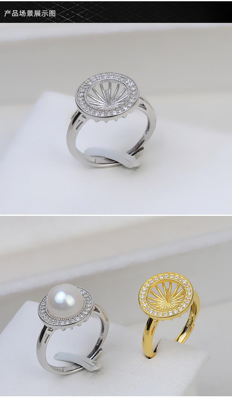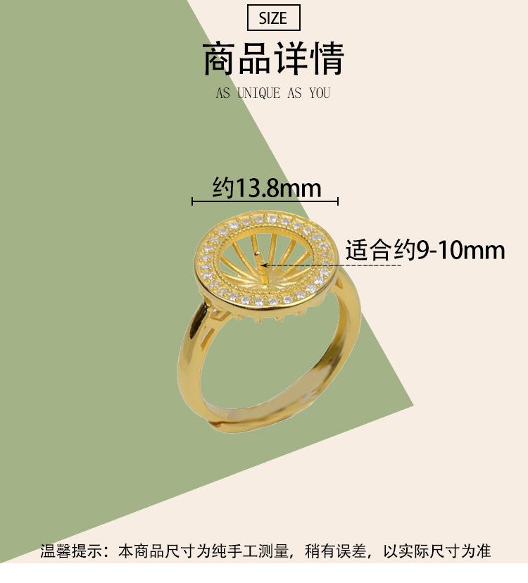 El anillo es un anillo abierto con un tamaño de cara de anillo de aproximadamente 13,8 mm, adecuado para cuentas redondas de 9-10 mm o cuentas de pan de 9-9,5 mm.