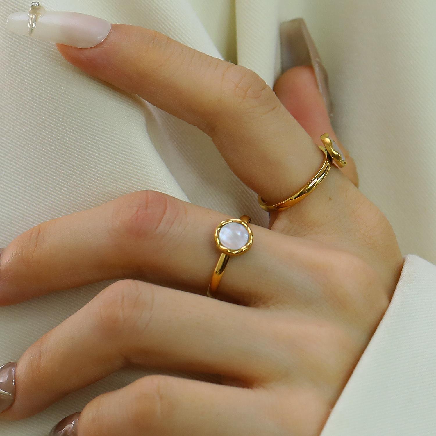 Pulsera de nuevo estilo con diseño francés, concha blanca sencilla, anillo redondo de acero de titanio, chapado en oro de 18 quilates, joyería para mujer.