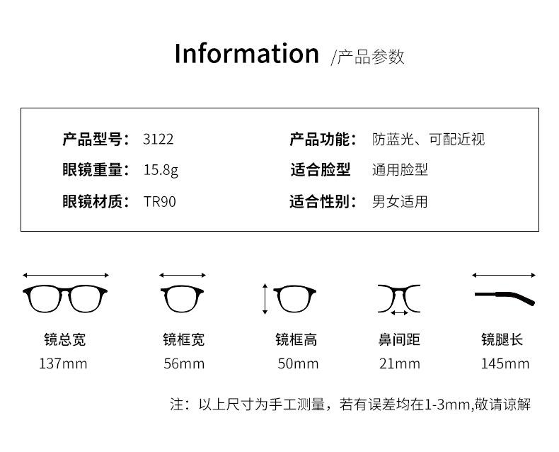 Gafas TR90 anti-luz azul 2022, nuevas, estilo coreano, personalizadas, con montura generosa, para miopía, montura de moda, gafas lisas.