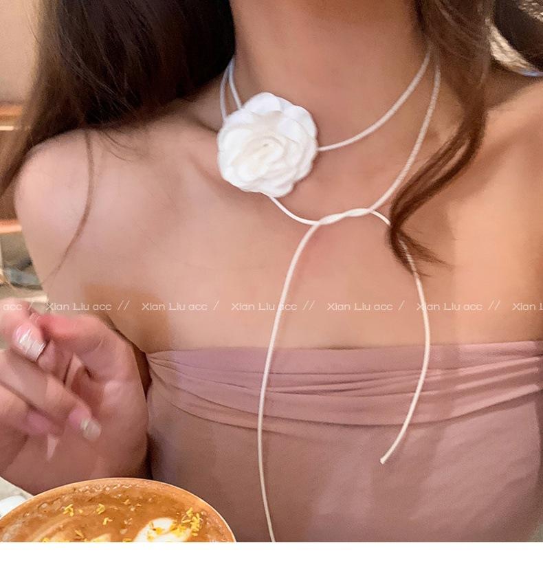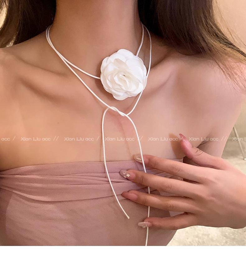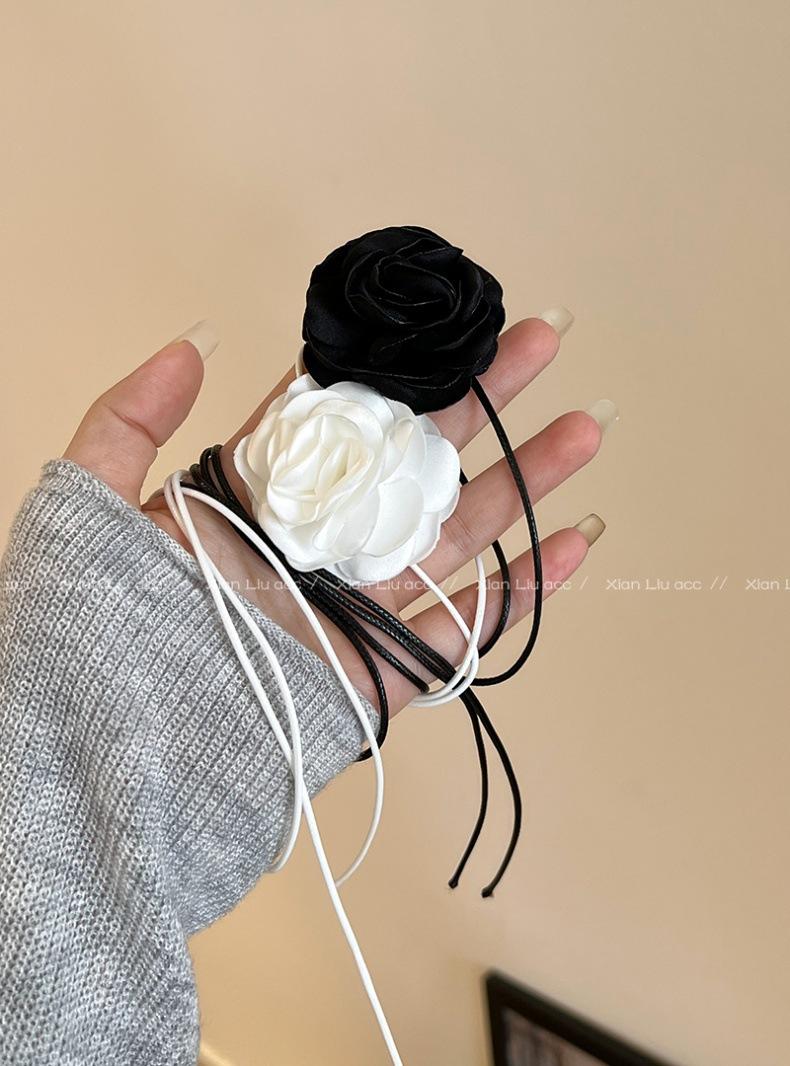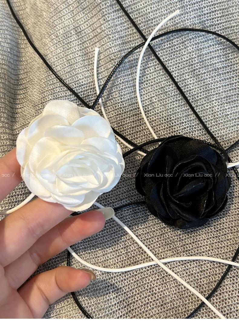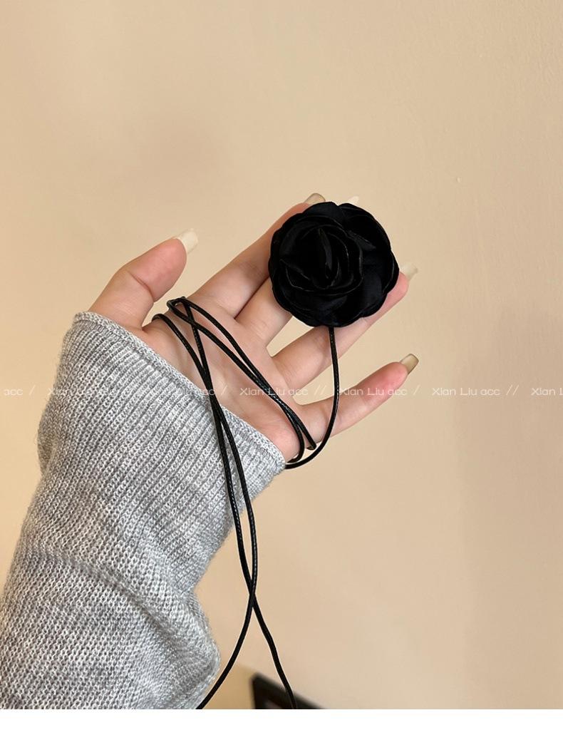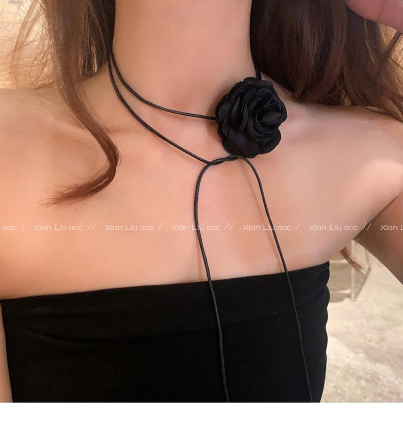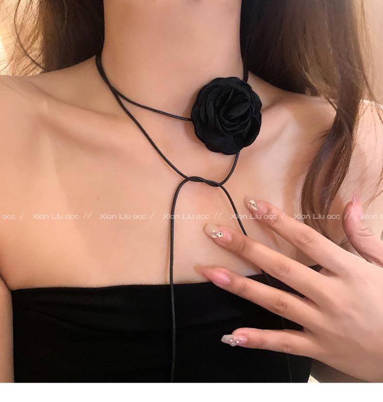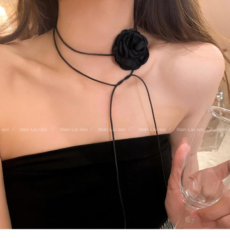 Collar de flor de rosa negra de alta calidad para mujer, gargantilla elegante, cadena para clavícula, diseño elegante de nicho, accesorios