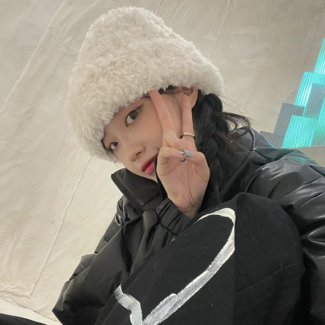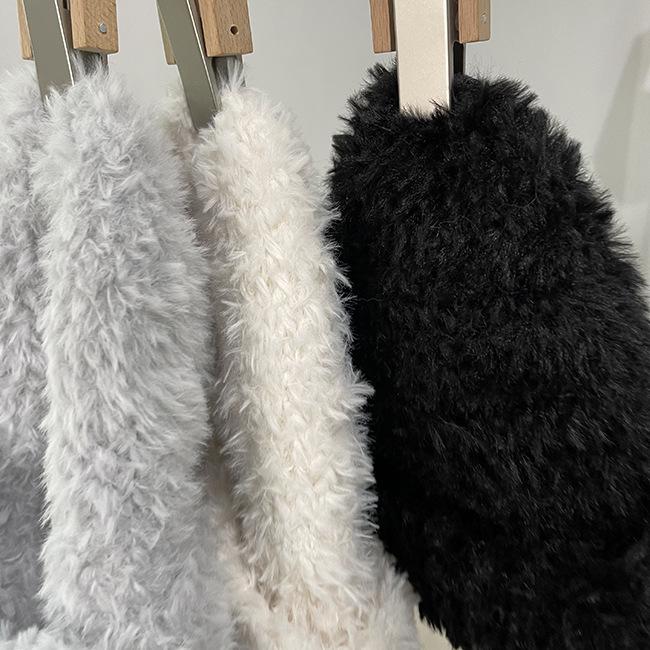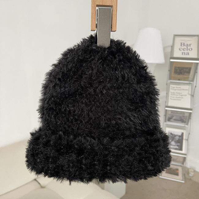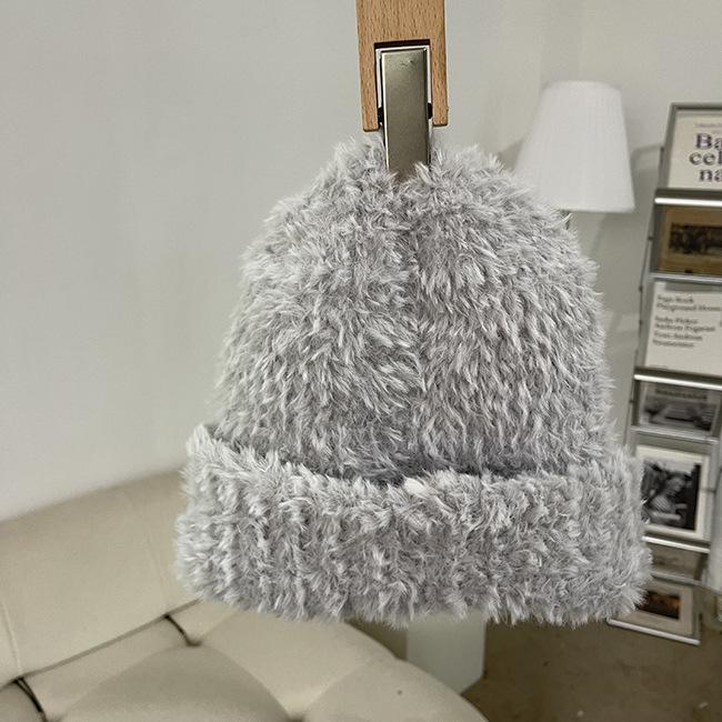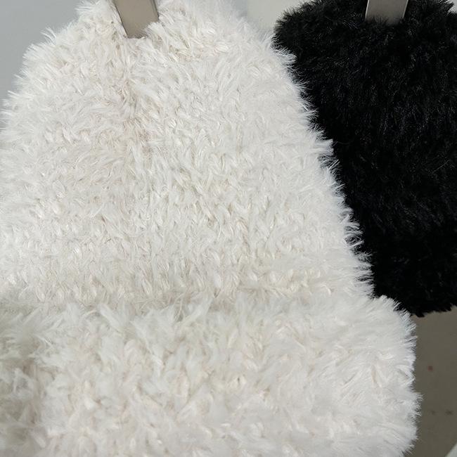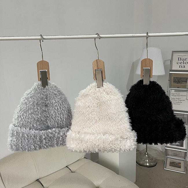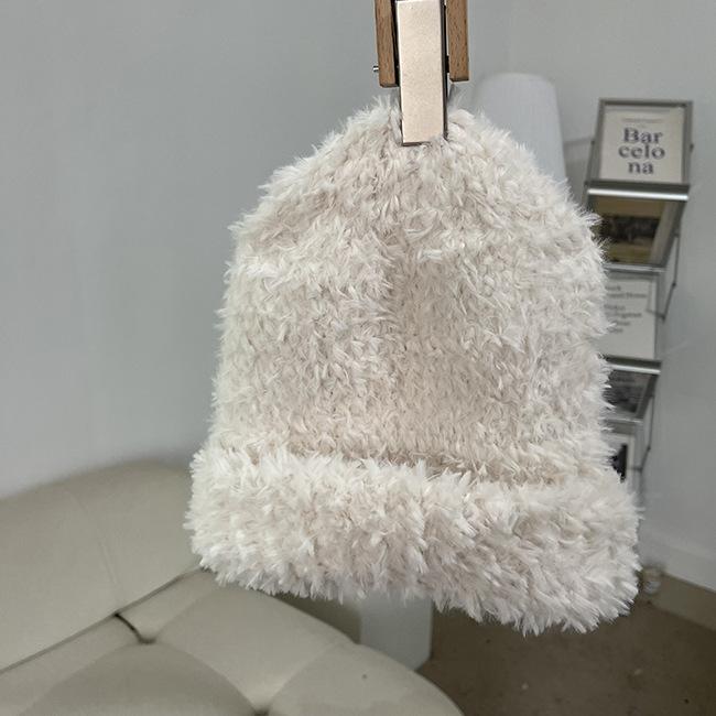 Compra Gorro de punto de felpa blanco coreano para mujer, de otoño e invierno, moderno, cálido, de piel sintética, con protección para las orejas, para celebridades de Internet. al por mayor en Joom.pro