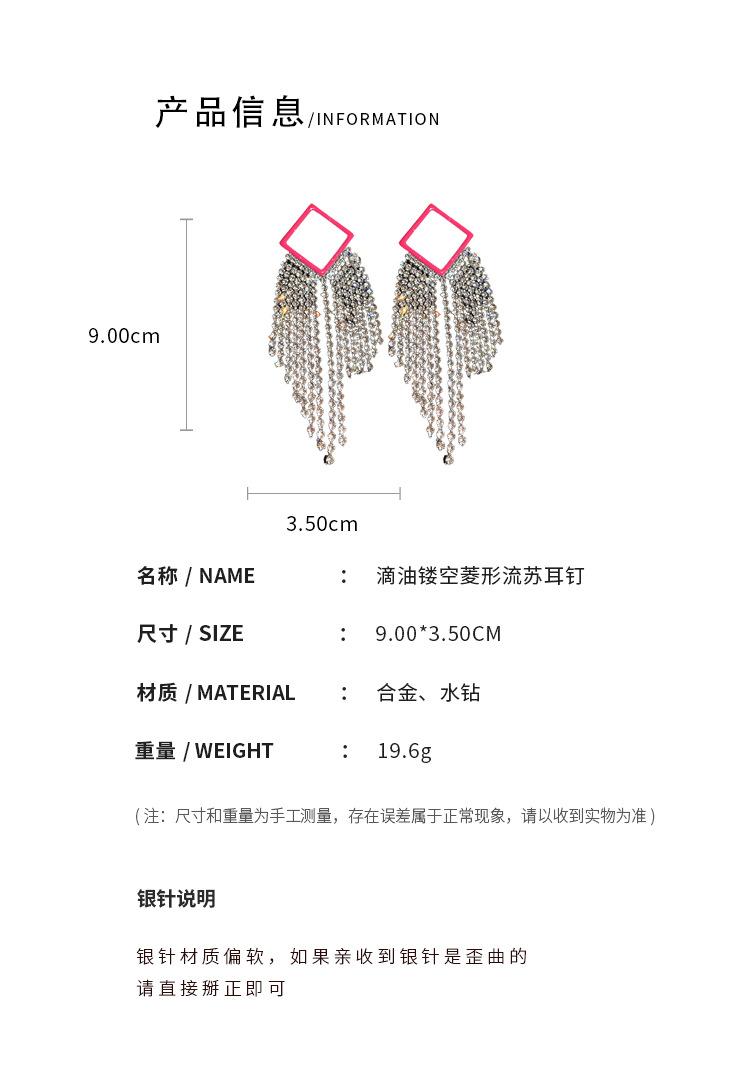 Compra Elegantes Aretes Colgantes de Diamante Romboidal Calado con Borla de Aguja de Plata Moda Europea y Americana Nicho Exagerado Elegante de Alta Gama para Mujer al por mayor en Joom.pro