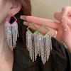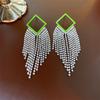 Silver Needle-Green Diamond Tassel Drop Earrings