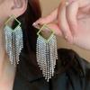 Elegantes Aretes Colgantes de Diamante Romboidal Calado con Borla de Aguja de Plata Moda Europea y Americana Nicho Exagerado Elegante de Alta Gama para Mujer
