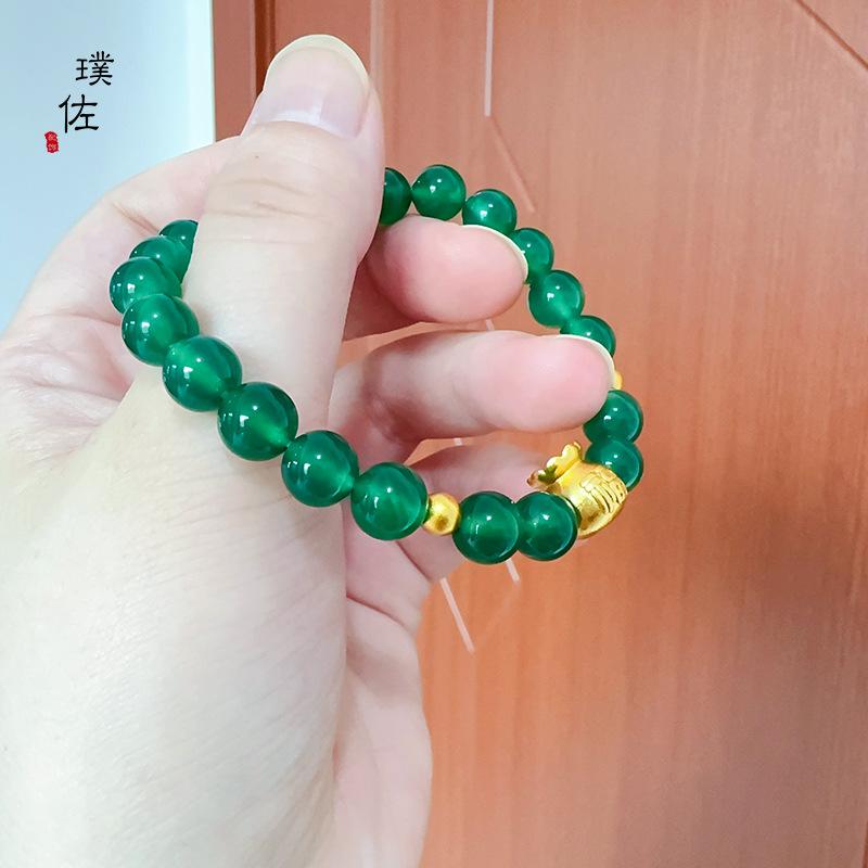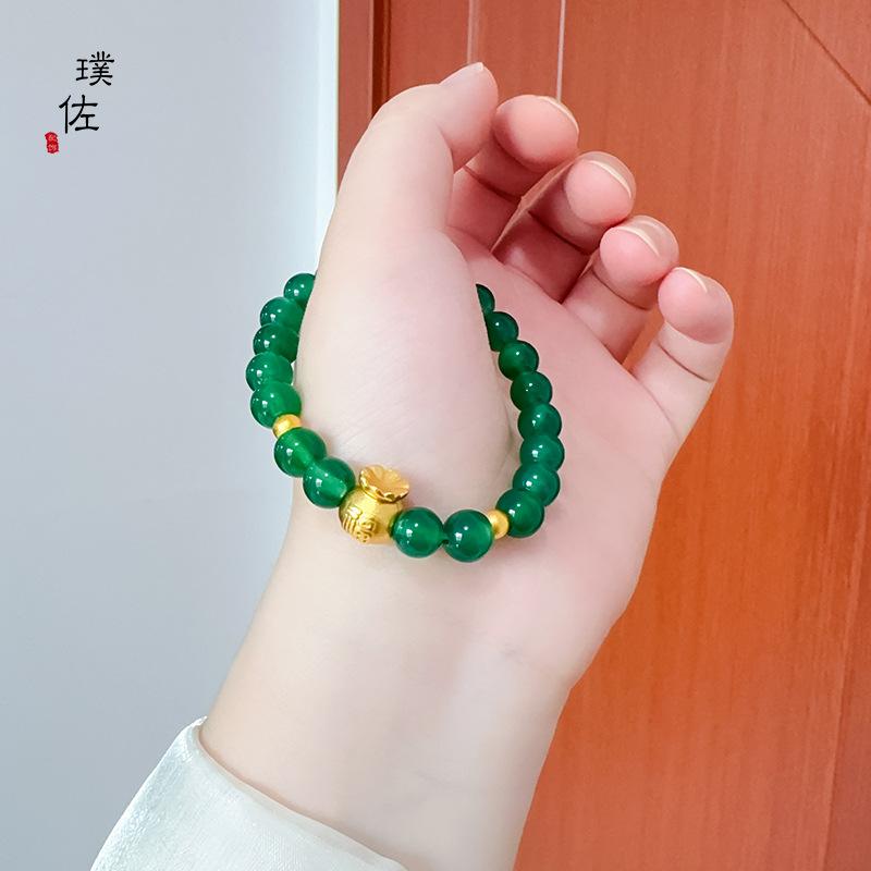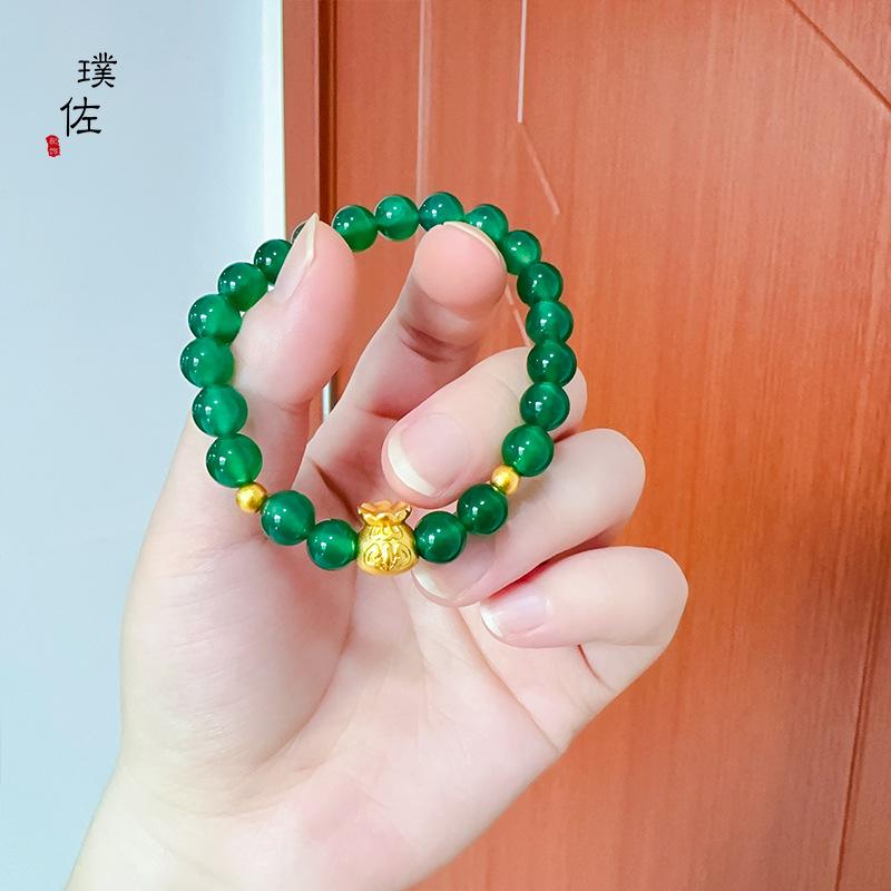 Joyería de oro con bolsa de la suerte de oro arena, pulsera de cuentas de transferencia de ágata verde, moda, costosa y blanca, pulsera de estilo nacional, regalo